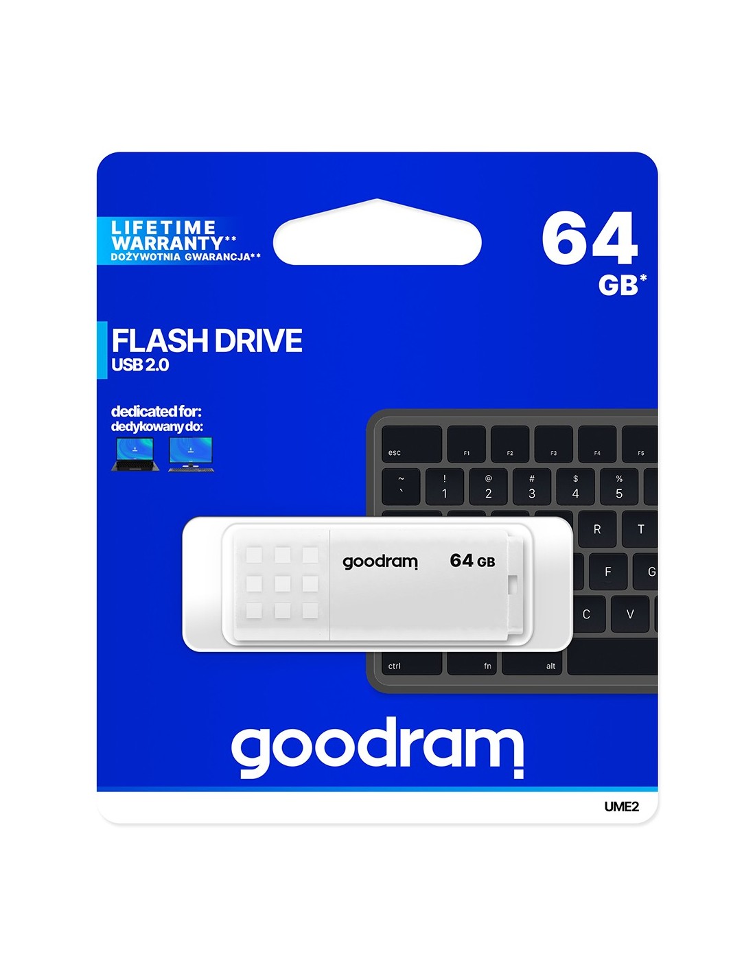Goodram UME2, 64 GB, USB tipo A, 2.0, 20 MB/s, Tapa, Blanco