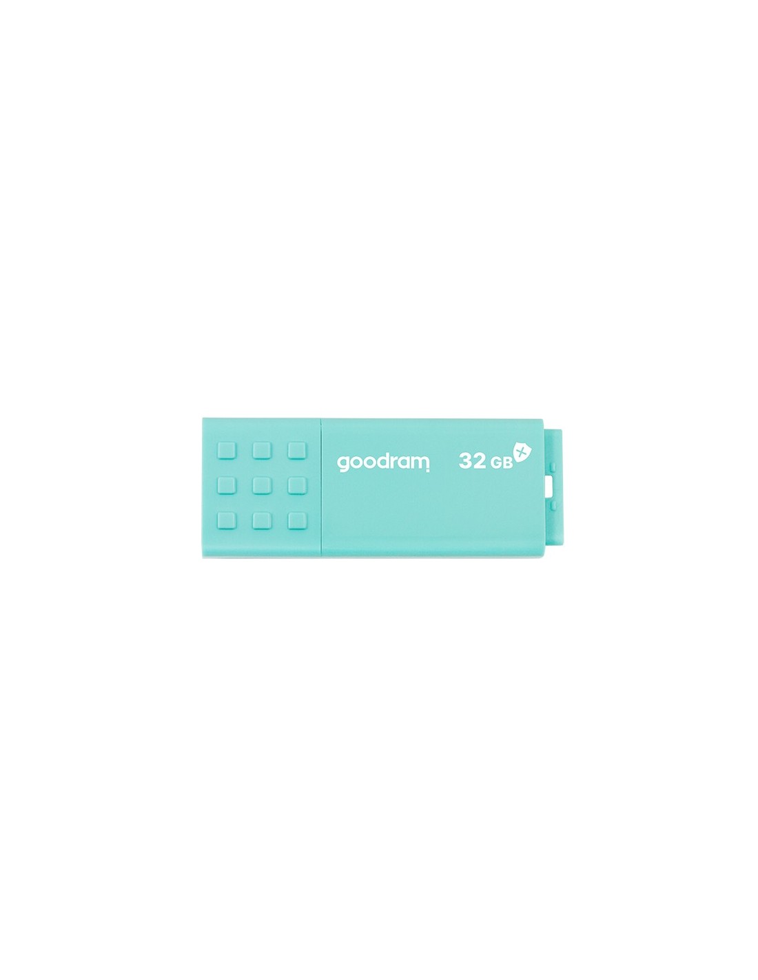 Goodram UME3. Capacidad: 32 GB, Interfaz del dispositivo: USB tipo A, Versión USB: 3.2 Gen 1 (3.1 Gen 1), Velocidad de lectura: 60 MB/s, Velocidad de escritura: 20 MB/s. Factor de forma: Tapa. Peso: 9 g. Color del producto: Turquesa
