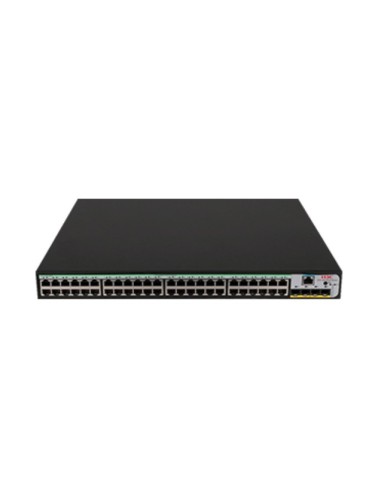 H3C S5120V3-52S-LI. Tipo de interruptor: Gestionado, Capa del interruptor: L3. Puertos tipo básico de conmutación RJ-45 Ethernet: Gigabit Ethernet (10/100/1000), Cantidad de puertos básicos de conmutación RJ-45 Ethernet: 48. Tabla de direcciones MAC: 16000 entradas, Capacidad de conmutación: 176 Gbit/s. Estándares de red: IEEE 802.1D, IEEE 802.1Q, IEEE 802.1ab, IEEE 802.1ag, IEEE 802.1ak, IEEE 802.1p, IEEE 802.1s, IEEE.... Montaje en rack