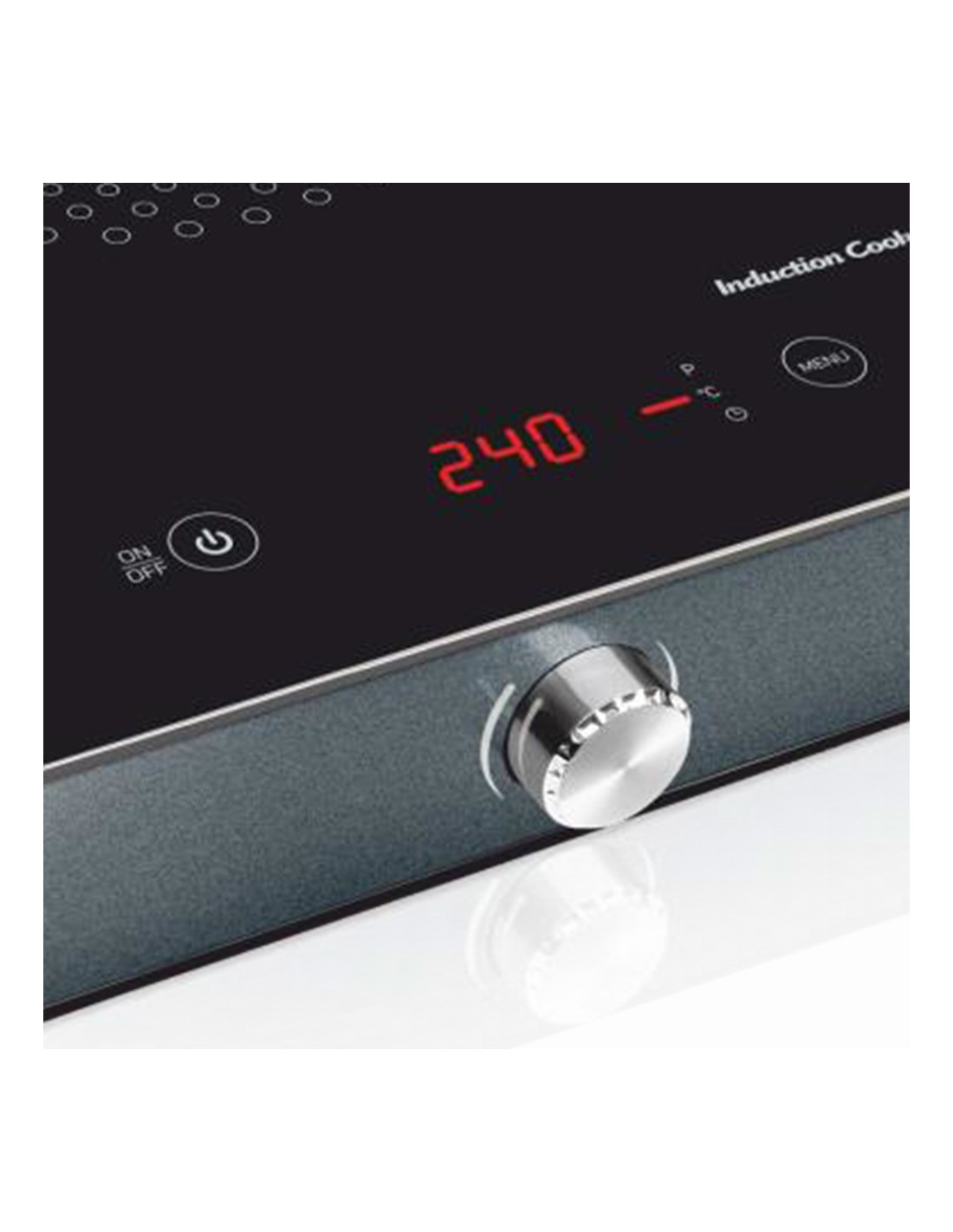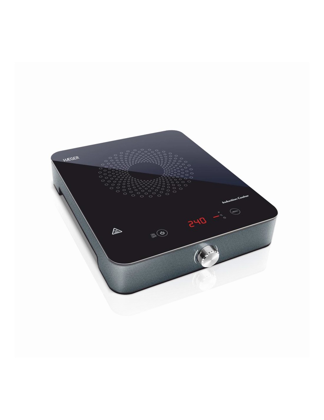 Haeger HP-IND.002A. Color del producto: Negro, Gris, Tipo de instalación: Encimera, Tipo de quemador: Con placa de inducción. Zona de cocción a fuego lento: 2000 W, Rango de temperatura (T-T): 60 - 240 °C. Tipo de control: Tocar, Control de posición: Parte superior delantera, Tipo de visualizador: LED. Carga conectada (eléctrica): 2000 W, Voltaje de entrada AC: 230 V, Frecuencia de entrada AC: 50 Hz. Ancho: 280 mm, Profundidad: 355 mm, Altura: 74 mm