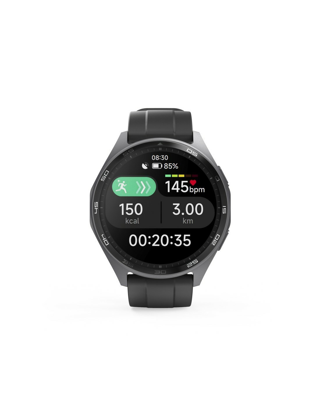 Registra frecuencia cardíaca, VO2max, SpO2, estrés, calorías, pasos, variabilidad cardíaca y más. Incluye rutas de running según tu nivel físico.