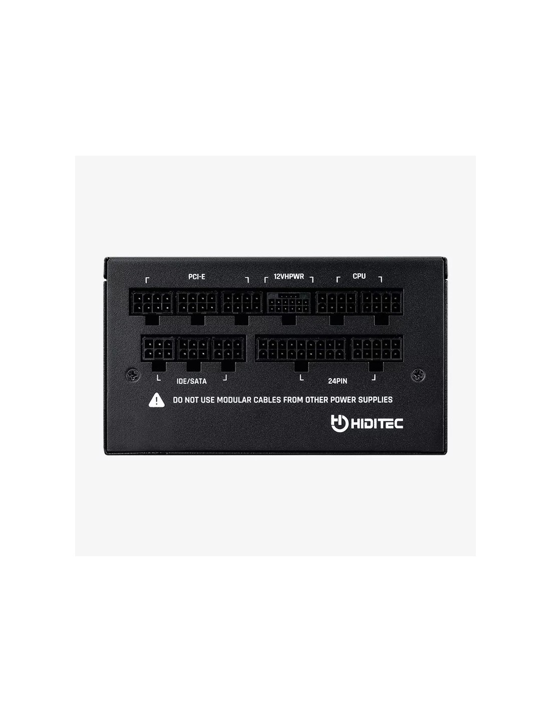 Hiditec GDX850 v2. Potencia total: 850 W, Voltaje de entrada AC: 100 - 240 V, Corriente máxima de salida (+3.3V): 20 A. Alimentador de energía para tarjeta madre: 20+4 pin ATX, Tipo de cableado: Totalmente modular. Utilizar con: PC, Factor de forma de fuente de alimentación (PSU): ATX, Certificación 80 PLUS: 80 PLUS Gold. Color del producto: Negro, Tipo de enfriamiento: Activo, Diámetro de ventilador: 14 cm. Certificados de conformidad: CE, Comisión Federal de Comunicaciones (FCC) de Estados Unidos, RoHS