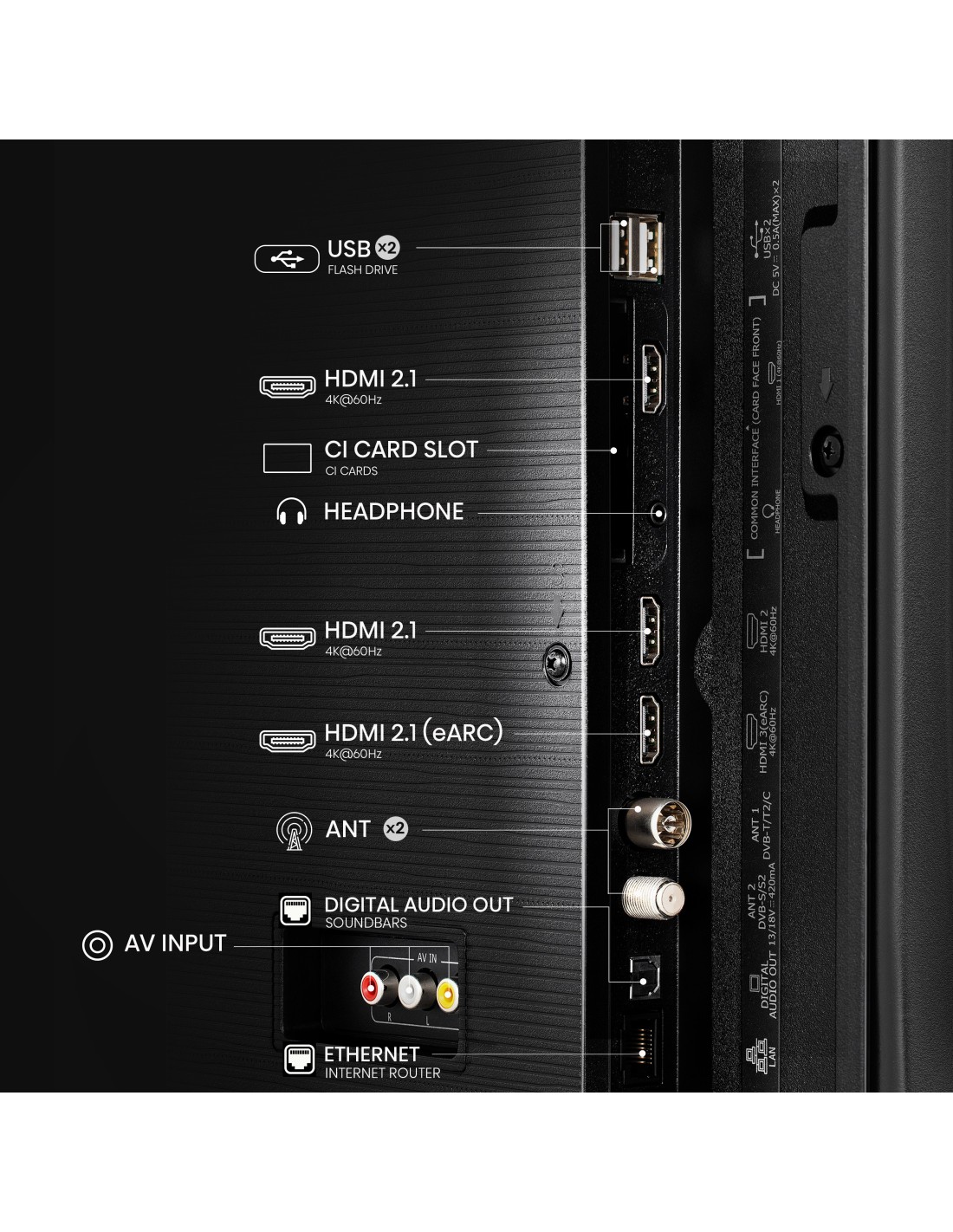 Hisense 50E7NQ. Diagonal de la pantalla: 127 cm (50"), Resolución de la pantalla: 3840 x 2160 Pixeles, Tipo HD: 4K Ultra HD, Tecnología de visualización: QLED, Forma de la pantalla: Plana, Tipo de retroiluminación LED: Direct-lit LED. Smart TV. Brillo de pantalla: 350 cd / m², Tiempo de respuesta: 8 ms, Razón de contraste (típica): 4000:1, Relación de aspecto nativa: 16:9. Formato de señal digital: DVB-C, DVB-S, DVB-S2, DVB-T, DVB-T2. Wifi, Ethernet. Color del producto: Negro