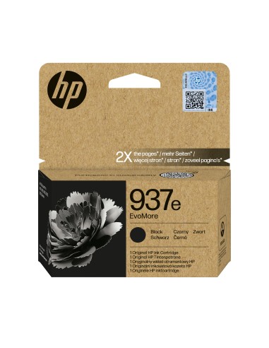 HP Cartucho de Tinta Original EvoMore 937e negra. Tipo de cartucho de tinta: Alto rendimiento (XL), Tipo de suministro: Pack individual, Colores de impresión: Negro, Cantidad por paquete: 1 pieza(s), Rendimiento de impresión de página con tinta negra: 2500 páginas