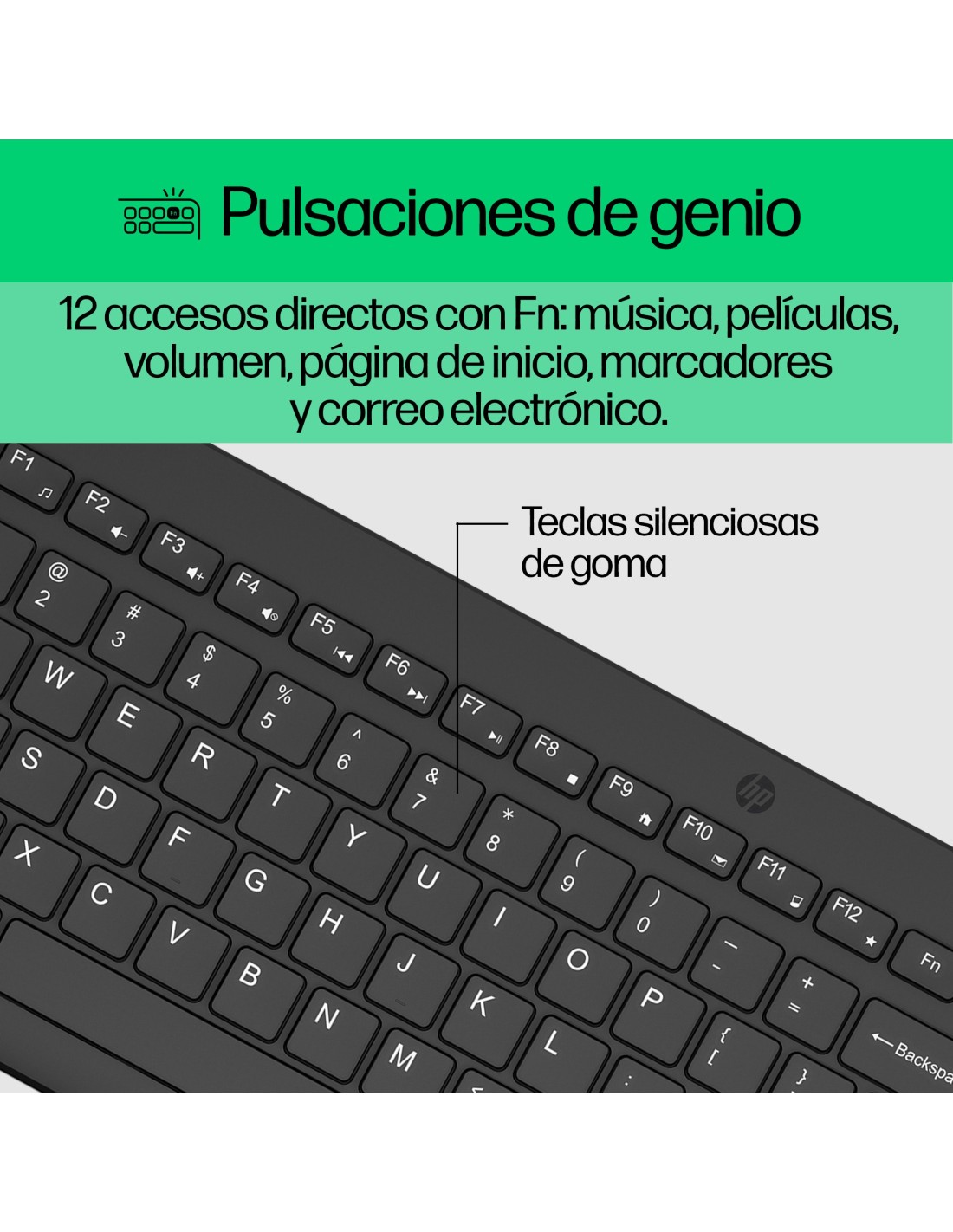 HP Combinación de teclado y ratón inalámbricos 330. Formato del teclado: Completo (100%), Tecnología de conectividad: Inalámbrico, Interfaz del dispositivo: RF inalámbrico, Uso recomendado: Universal. Color del producto: Negro. Ratón incluido