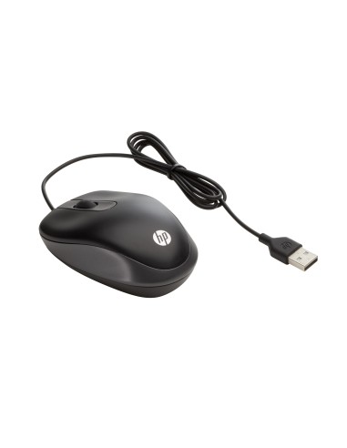 HP Ratón de viaje USB. Factor de forma: Ambidextro. Tecnología de detección de movimientos: Óptico, Interfaz del dispositivo: USB tipo A, Resolución de movimiento: 1000 DPI, Tipo de botones: Botones presionados, Cantidad de botones: 2, Tipo de desplazamiento: Rueda. Fuente de energía: Cable. Color del producto: Negro