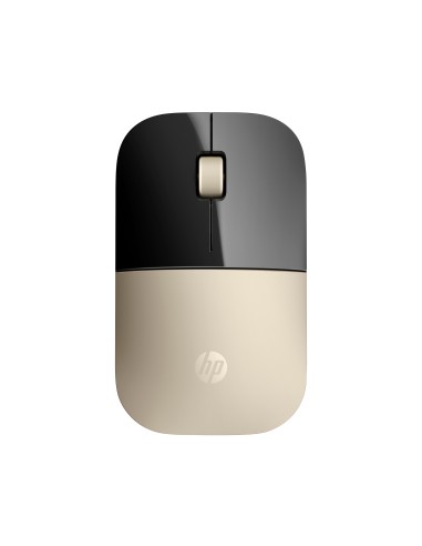 HP Ratón inalámbrico Z3700 dorado. Factor de forma: Ambidextro. Tecnología de detección de movimientos: Óptico, Interfaz del dispositivo: RF inalámbrico, Resolución de movimiento: 1200 DPI, Tipo de botones: Botones presionados, Cantidad de botones: 3, Tipo de desplazamiento: Rueda. Fuente de energía: Baterías. Color del producto: Oro