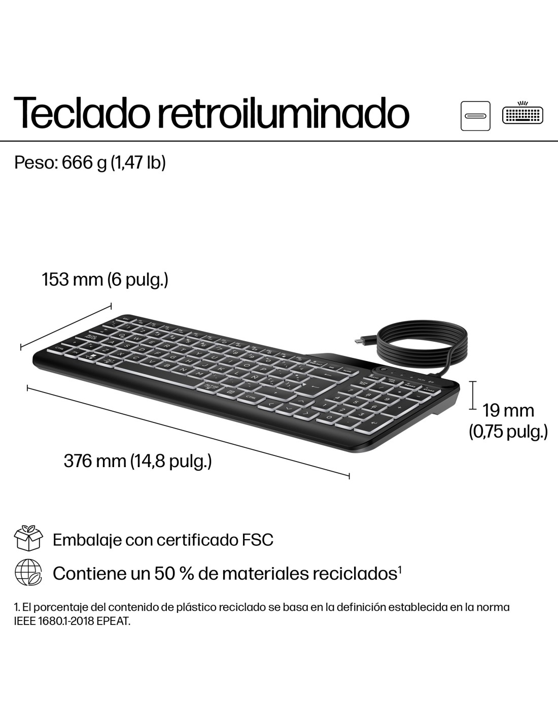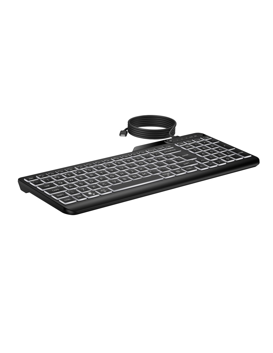 HP Teclado con cable retroiluminado multidispositivo 405. Formato del teclado: Completo (100%), Tecnología de conectividad: Alámbrico, Interfaz del dispositivo: USB, Interruptor del teclado: Interruptor de membrana, Uso recomendado: Oficina. Color del producto: Negro