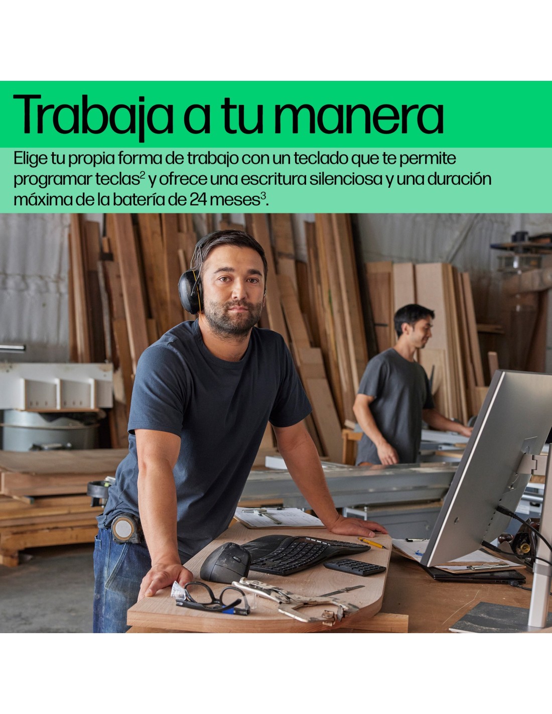 Créate un espacio de trabajo ajustado a tus necesidades con el teclado inalámbrico ergonómico de HP y su diseño científico. Su diseño dividido por zonas te permite adaptarlo a ti, mientras que las veinte teclas programables[1] y el teclado numérico independiente te ofrecen una personalización completa. Además, gracias a sus dos opciones de conexión de dispositivos, podrás trabajar con la seguridad de contar con las herramientas adecuadas para cada tarea.