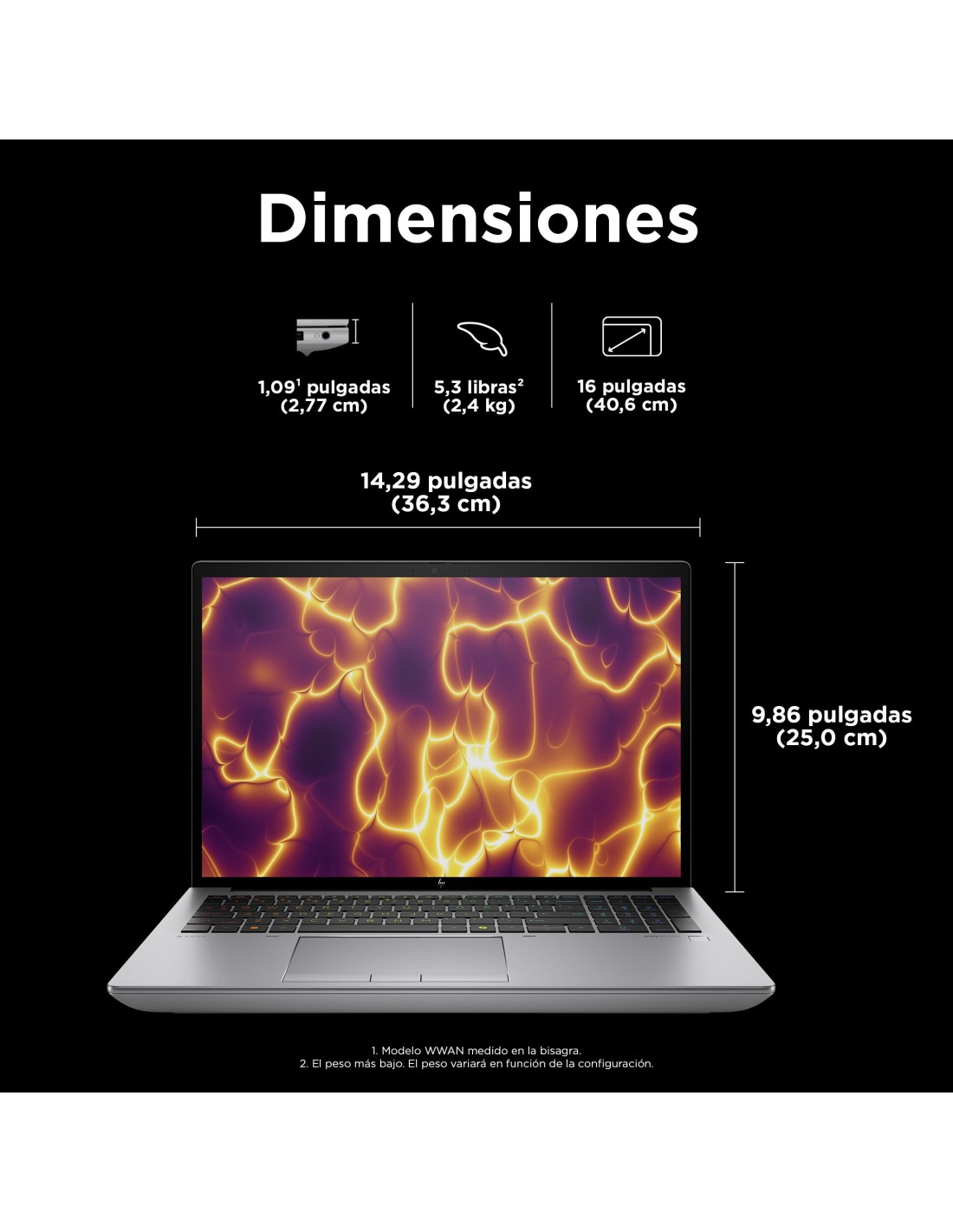 HP ZBook Fury G11. Tipo de producto: Estación de trabajo móvil, Factor de forma: Concha. Familia de procesador: Intel® Core™ i9, Modelo del procesador: i9-14900HX. Diagonal de la pantalla: 40,6 cm (16"), Tipo HD: WUXGA, Resolución de la pantalla: 1920 x 1200 Pixeles. Memoria interna: 32 GB, Tipo de memoria interna: DDR5-SDRAM. Capacidad total de almacenaje: 1 TB, Unidad de almacenamiento: SSD. Modelo de adaptador gráfico incorporado: Intel® UHD Graphics, Modelo de adaptador de gráficos discretos: NVIDIA Quadro RTX 4000. Sistema operativo instalado: Windows 11 Pro. Color del producto: Plata