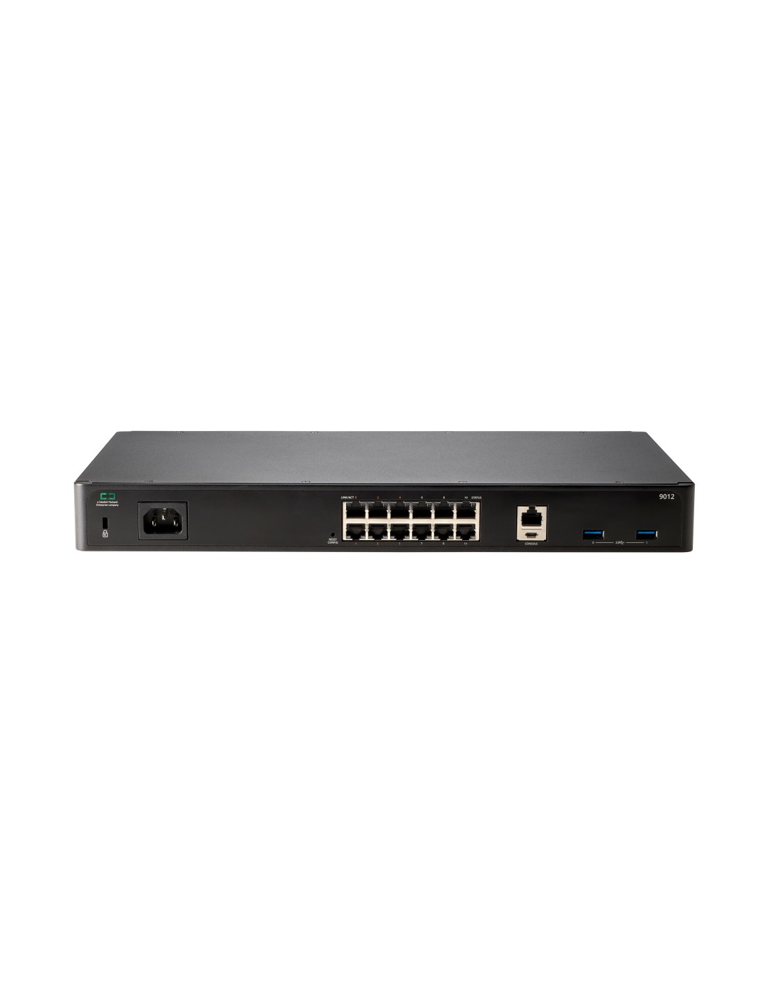 HPE Aruba Networking 9012 (RW) 12xGbE 6xPoE+ Branch 2K Clients - 32 APs Gateway, Negro, Montaje en bastidor, LAN, Estado, WAN, 100,1000 Mbit/s, IPSec, SSL/TLS, micro USB, RJ-45
