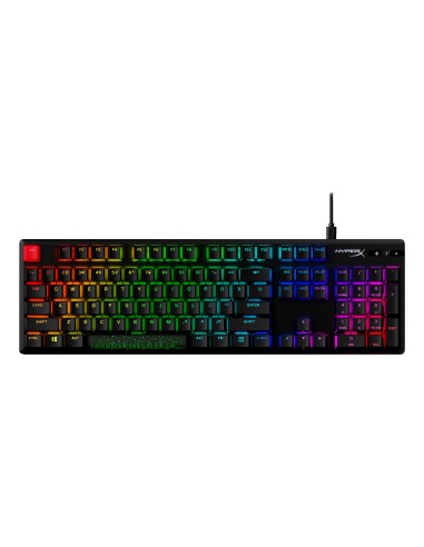 HyperX Teclado mecánico gaming Alloy Origins PBT HX rojo. Formato del teclado: Completo (100%). Estilo de teclado: Derecho. Tecnología de conectividad: Alámbrico, Interfaz del dispositivo: USB, Interruptor del teclado: Interruptor mecánico. Tipo de retroiluminación: LED RGB. Longitud de cable: 1,8 m. Uso recomendado: Juego. Color del producto: Negro