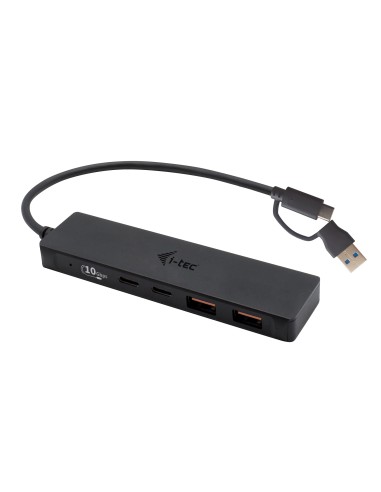 i-tec Metal USB-A/USB-C HUB 2x USB 3.0 + 2x USB-C (10 Gbps), USB 3.2 Gen 1 (3.1 Gen 1) Type-C, USB 3.2 Gen 1 (3.1 Gen 1) Type-A, USB 3.2 Gen 1 (3.1 Gen 1) Type-C, 10000 Mbit/s, Negro, Android, ChromeOS, 110 mm