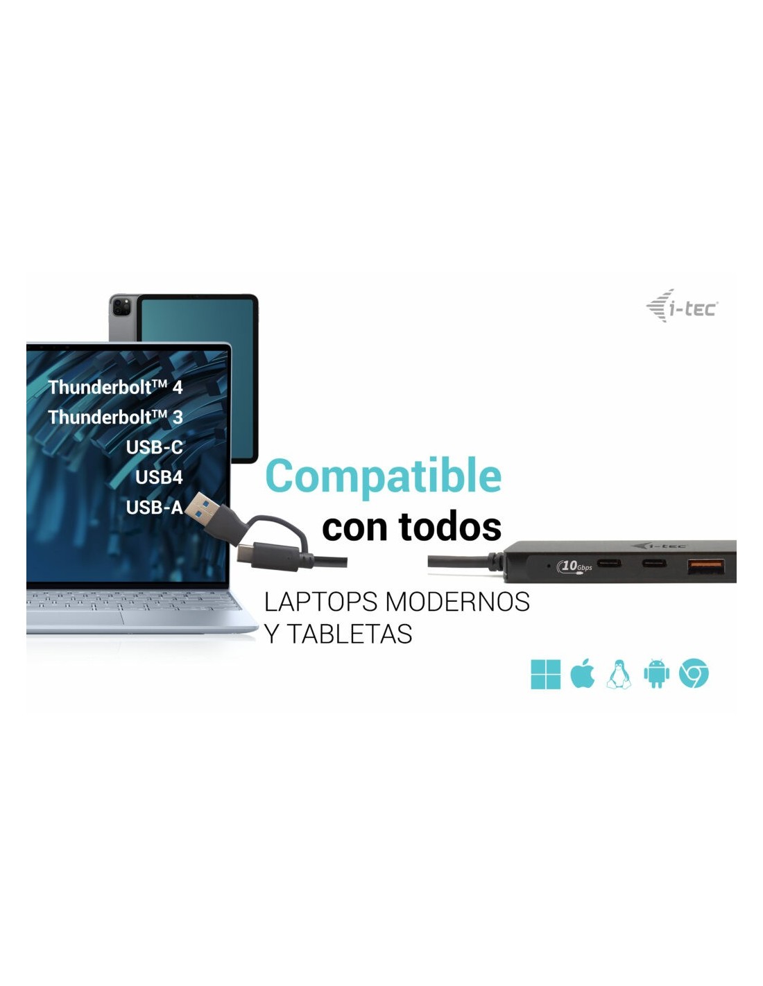 i-tec Metal USB-A/USB-C HUB 2x USB 3.0 + 2x USB-C (10 Gbps), USB 3.2 Gen 1 (3.1 Gen 1) Type-C, USB 3.2 Gen 1 (3.1 Gen 1) Type-A, USB 3.2 Gen 1 (3.1 Gen 1) Type-C, 10000 Mbit/s, Negro, Android, ChromeOS, 110 mm