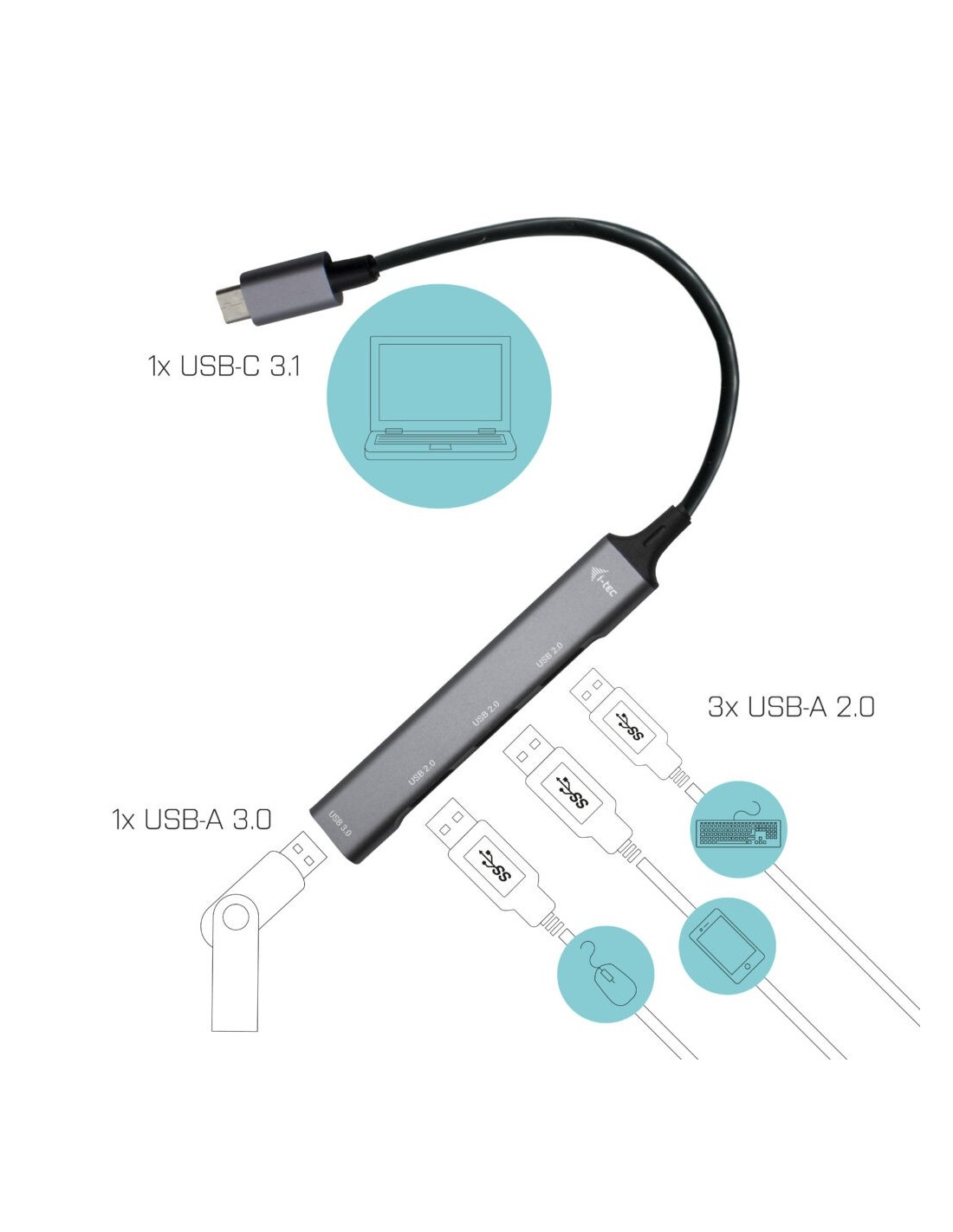 i-tec Metal USB-C HUB 1x USB 3.0 + 3x USB 2.0, USB 3.2 Gen 1 (3.1 Gen 1) Type-C, USB 2.0, USB 3.2 Gen 1 (3.1 Gen 1) Type-A, Metálico, Metal, 0,19 m, Android