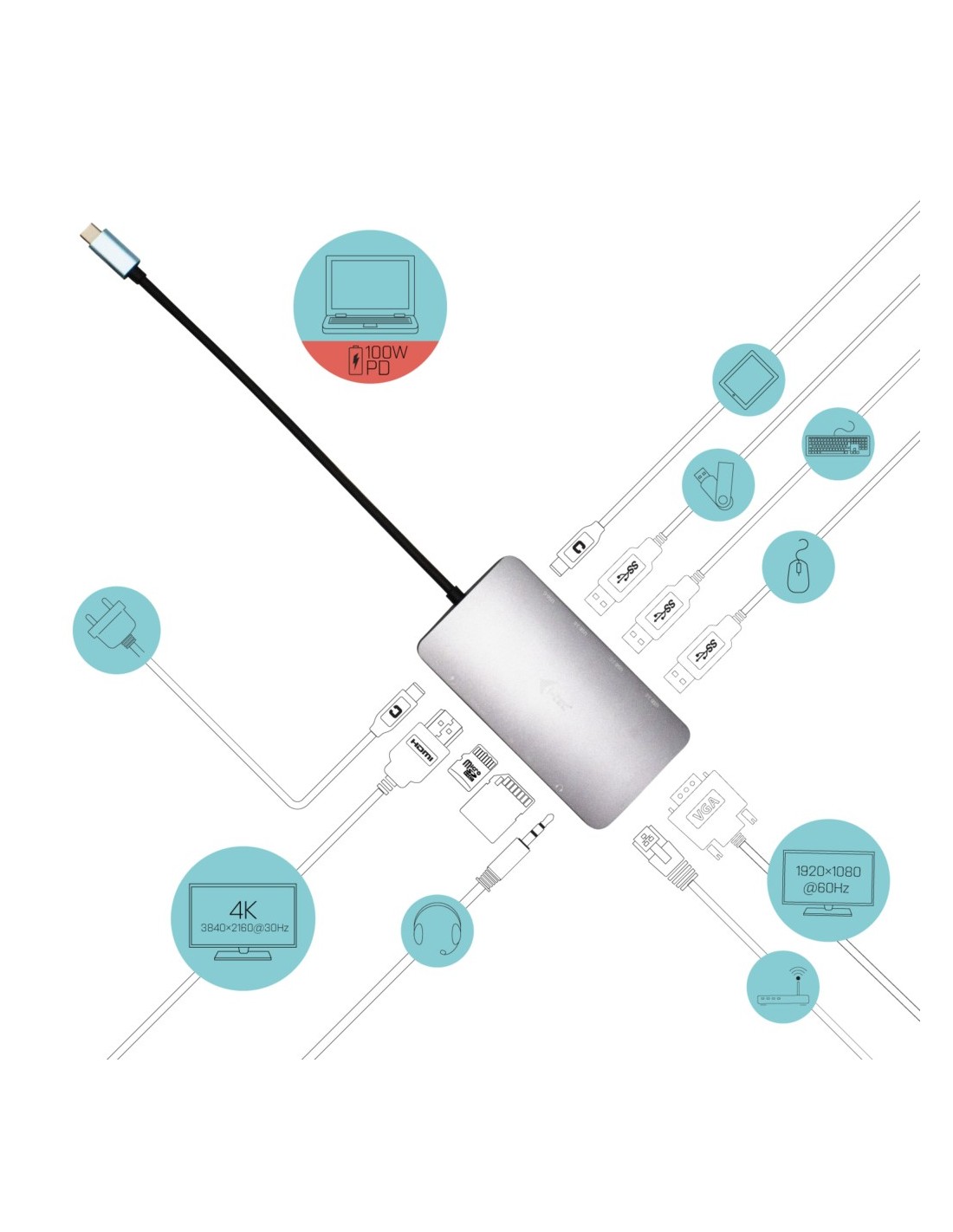 i-tec Metal USB-C Nano Dock HDMI/VGA with LAN + Universal Charger 77 W