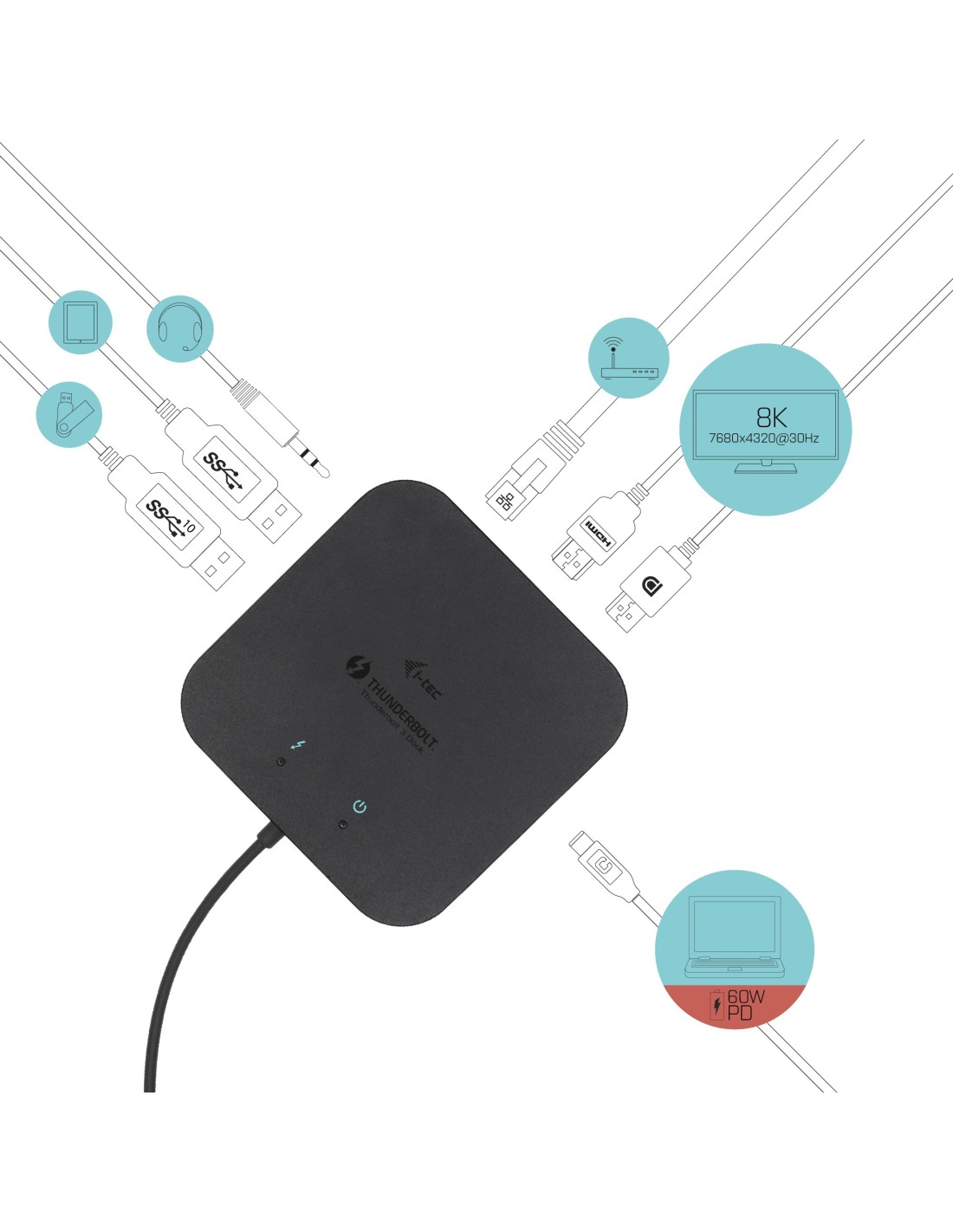 i-tec Thunderbolt 3 Travel Dock Dual 4K Display + Power Delivery 60W, Alámbrico, Thunderbolt 3, 60 W, 3,5 mm, 10,100,1000 Mbit/s, Negro