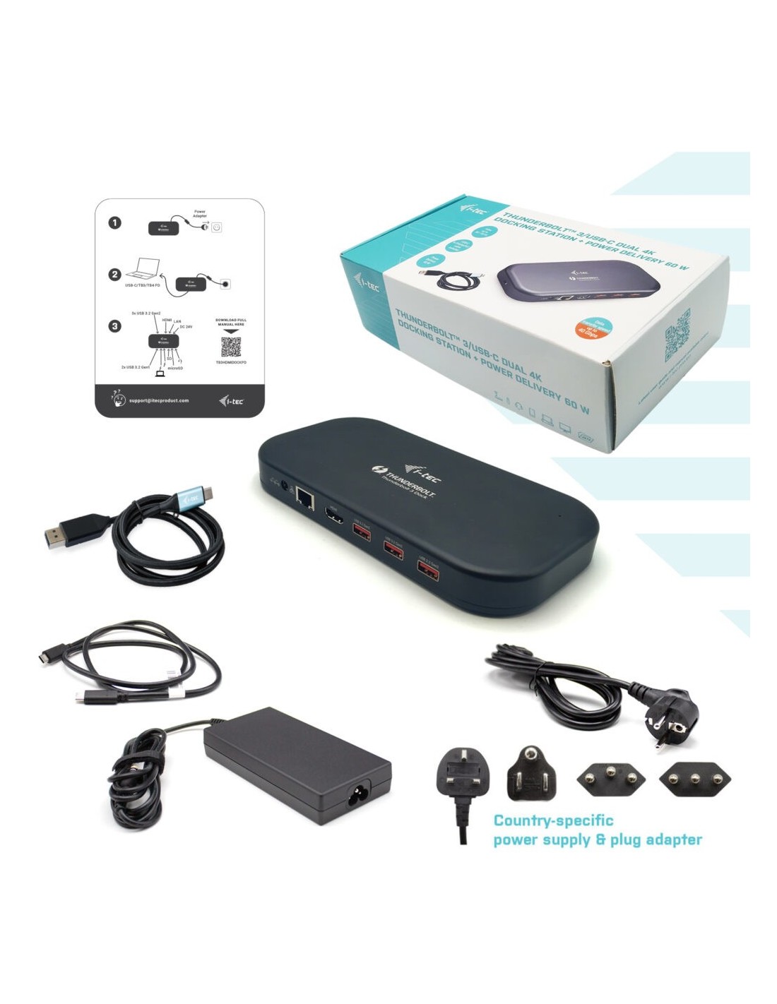 i-tec Thunderbolt 3/USB-C Dual 4K Docking Station + USB-C to DisplayPort Cable (1,5 m) + Power Delivery 60W