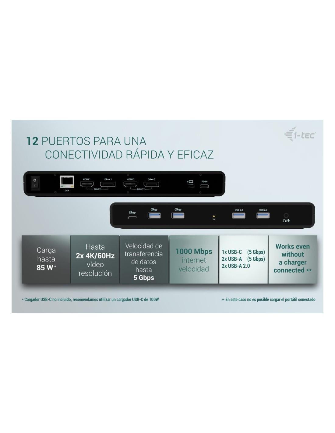 i-tec Universal Dual 4K Display Docking Station + Power Delivery 85W, Alámbrico, USB 3.2 Gen 1 (3.1 Gen 1) Type-C, 85 W, 10,100,1000 Mbit/s, Negro, 5 Gbit/s