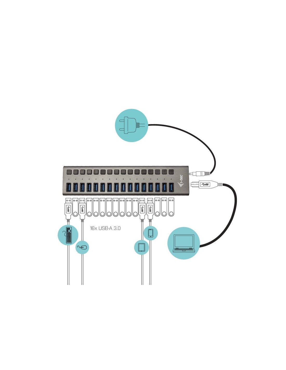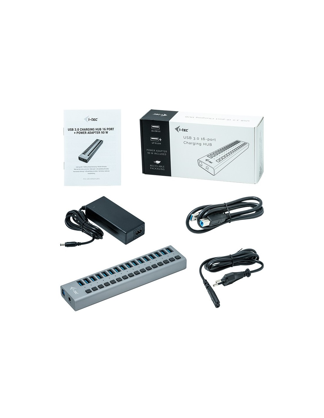 Descripción del producto largo: i-tec USB 3.0 Charging HUB 16port con el adaptador de alimentación 90 W, 16x puerto de carga USB 3.0, ideal para computadoras portátiles, ultrabooks, tabletas, computadoras de escritorio (PC), Windows, Mac, Linux