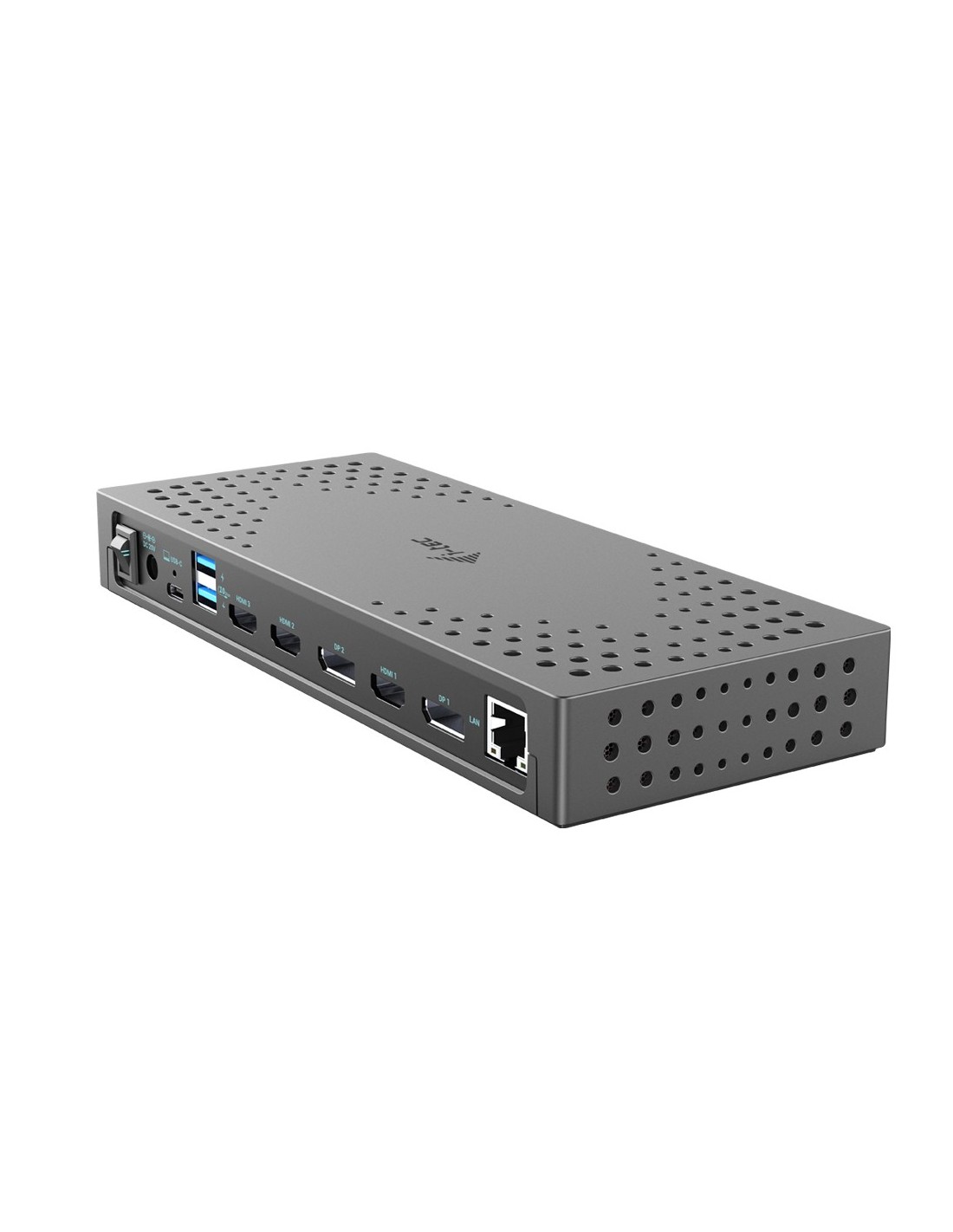Una potente base de conexión profesional Gen 2 que admite la salida de hasta tres monitores externos con una resolución de hasta 4K. La base se puede utilizar con prácticamente todos los portátiles, ya que admite la conexión a todos los puertos habituales: USB 3.0, USB-C y Thunderbolt» 3/4, a la vez que es compatible con todos los sistemas operativos comunes actuales. Sin embargo, la conexión a tres monitores solo será posible si el portátil tiene un puerto Thunderbolt» 3/4 o un puerto USB-C que admita la transferencia de vídeo (modo USB-C DP Alt). Si se conecta a un portátil con puerto USB 3.0, solo se admitirán dos monitores.