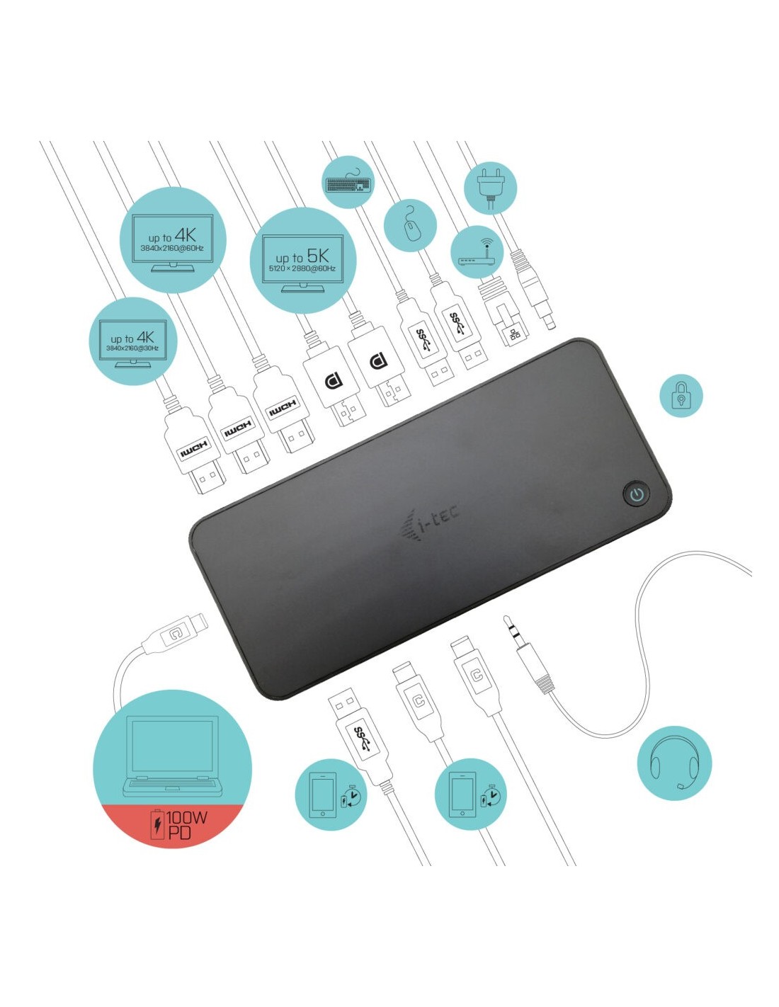 i-tec USB 3.0 / USB-C / Thunderbolt, 3x 4K Docking Station + Power Delivery 100W, Alámbrico, USB 3.2 Gen 1 (3.1 Gen 1) Type-C, 100 W, 3,5 mm, 10,100,1000 Mbit/s, Negro