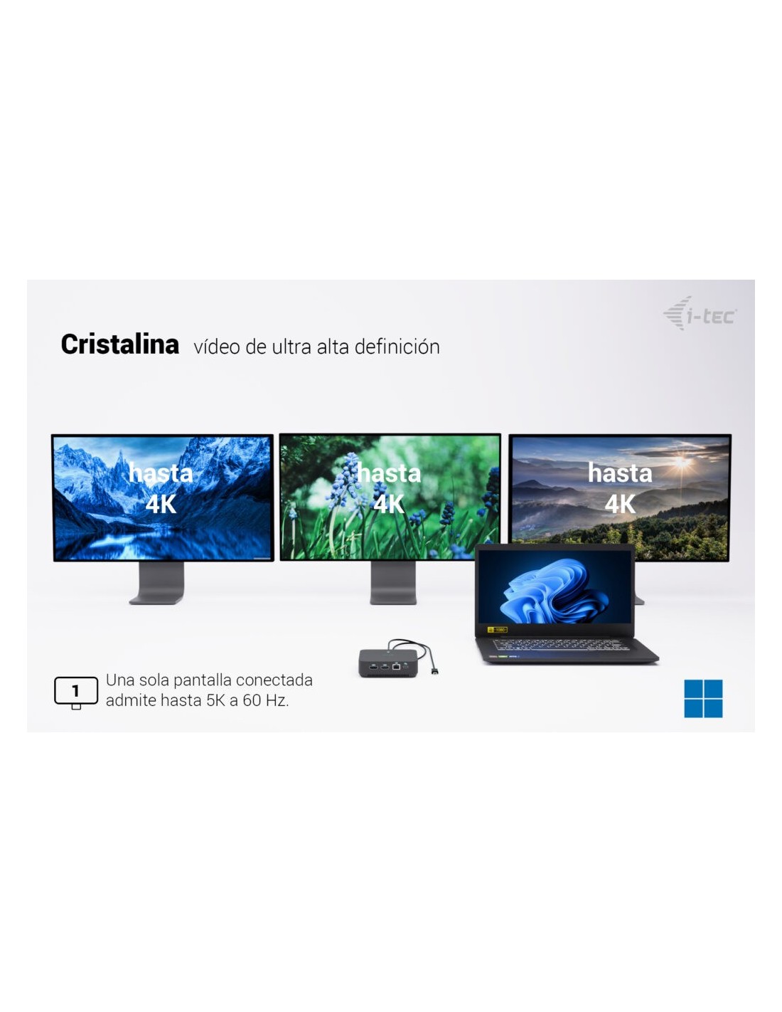 i-tec USB-C DP Dual HDMI Docking Station with Power Delivery 100 W + Universal Charger 100W. Tecnología de conectividad: Alámbrico, Interfaz de host: USB 3.2 Gen 2 (3.1 Gen 2) Type-C, Entrega de energía USB (USB Power Delivery) de hasta: 100 W. Ethernet LAN, velocidad de transferencia de datos: 10,100,1000 Mbit/s. Color del producto: Negro, Velocidad de transferencia de datos: 10 Gbit/s, Resolución (máxima digital): 3840 x 2160 Pixeles. Alimentación: USB, Conector eléctrico: USB Tipo C, Voltaje de entrada AC: 100 - 240 V. Sistema operativo Windows soportado: Windows 10, Windows 11, Otros sistemas operativos soportados: Android, ChromeOS, iPadOS