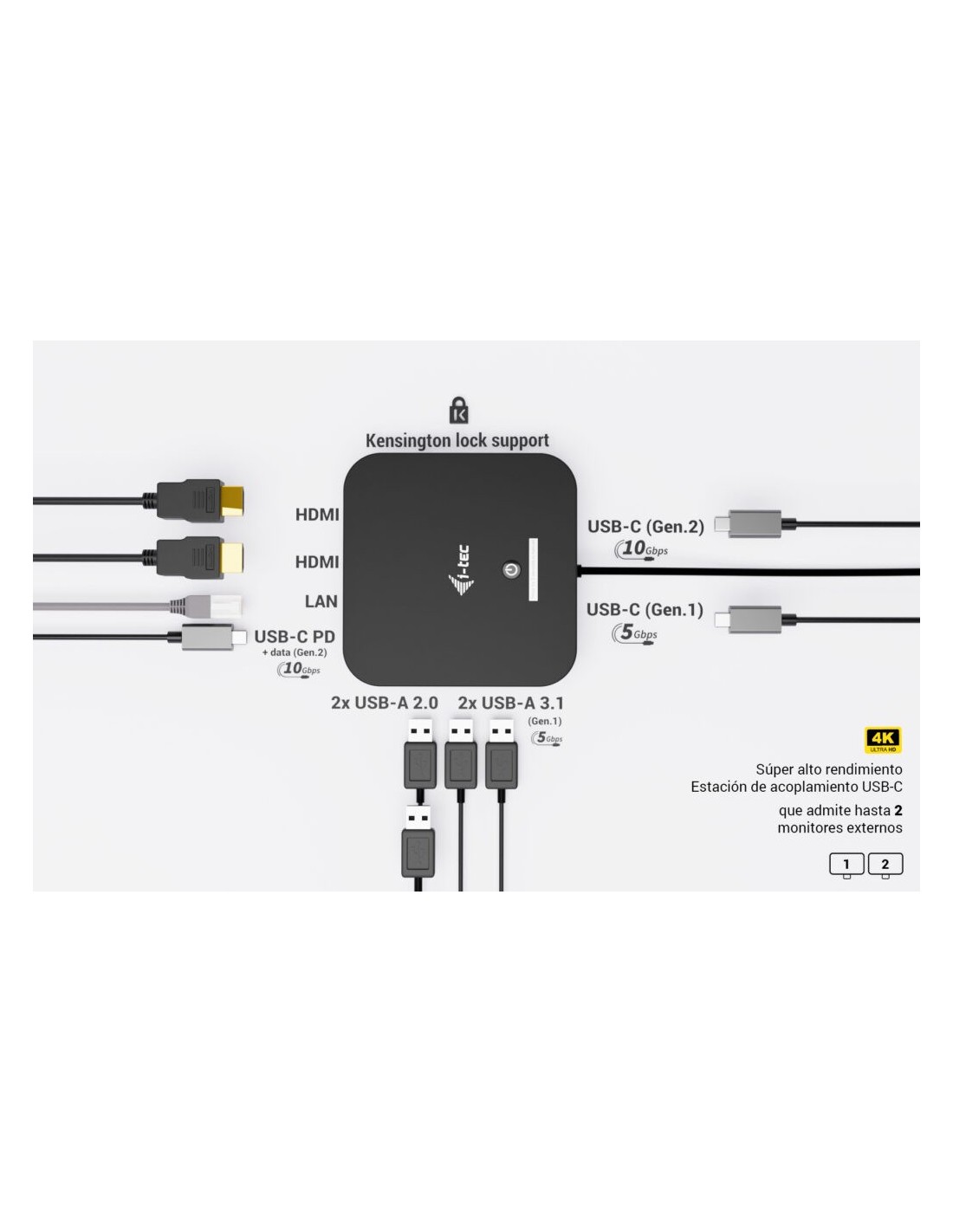 i-tec USB-C Dual HDMI Docking Station with Power Delivery 100 W, Alámbrico, USB 3.2 Gen 2 (3.1 Gen 2) Type-C, 100 W, 10,100,1000 Mbit/s, Negro, 10 Gbit/s