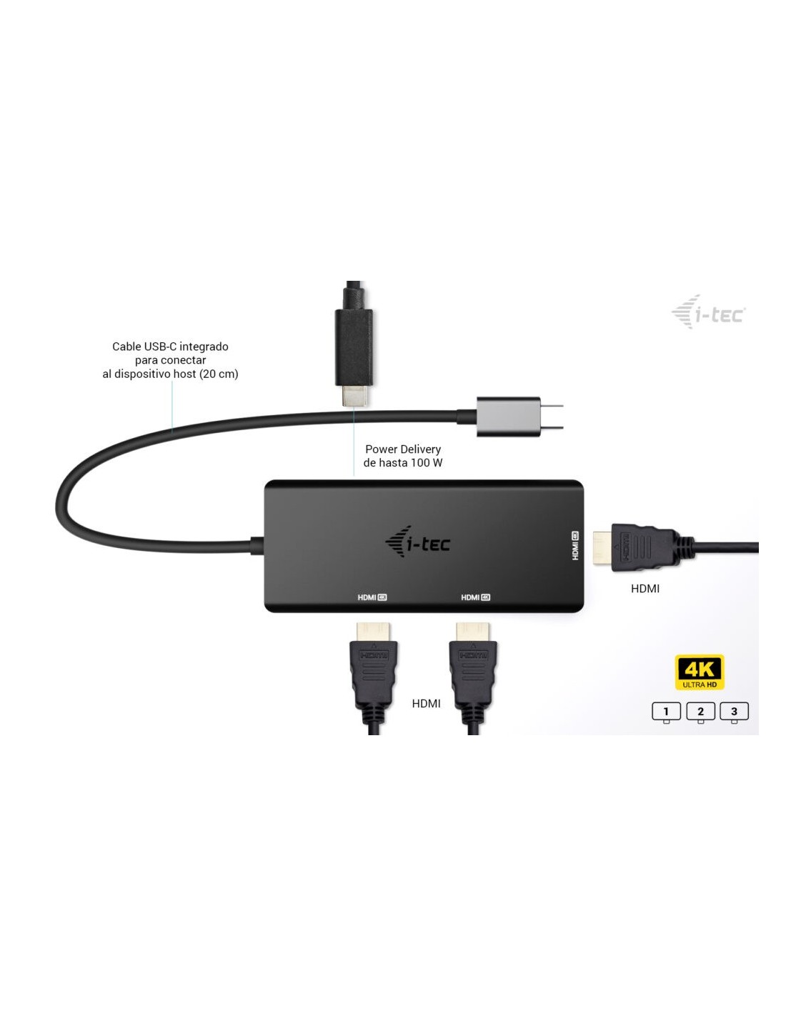 i-tec USB-C Triple 4K HDMI Video Adapter, Power Delivery 100W, 0,2 m, USB Tipo C, 3 x HDMI, Macho, Hembra, 3840 x 2160 Pixeles