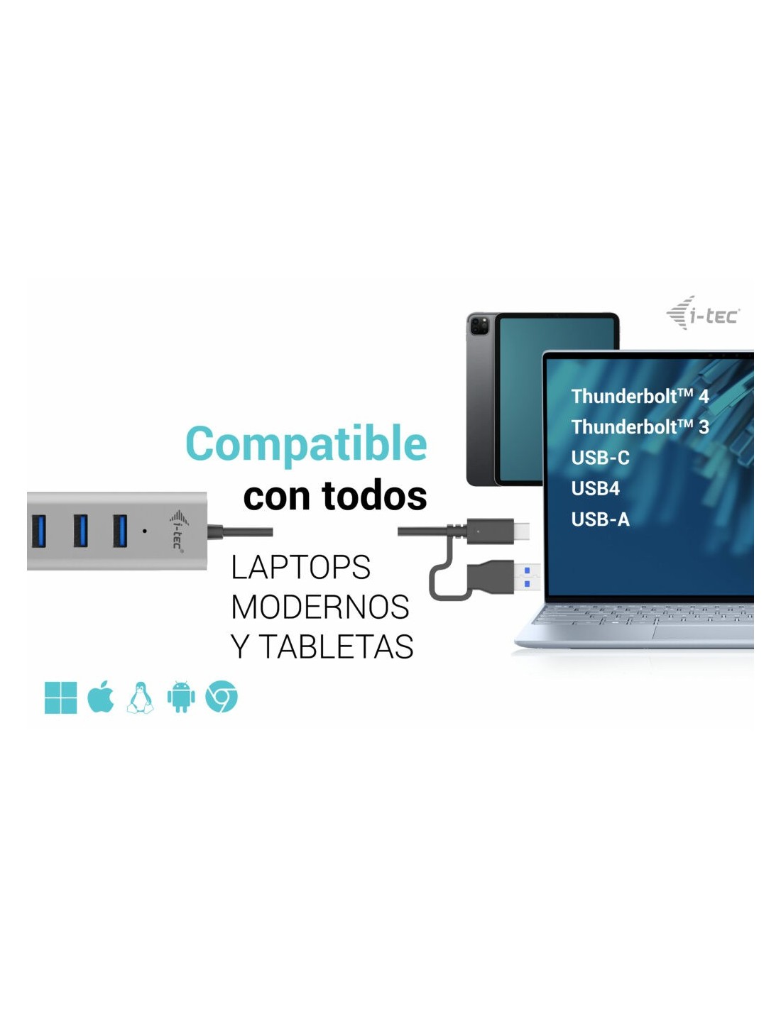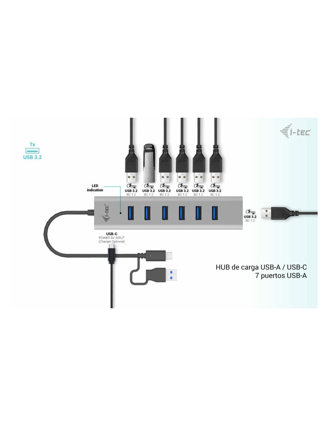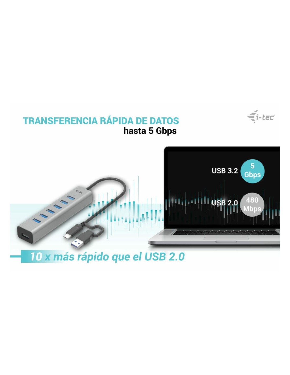 i-tec USB-C/USB-A Charging Metal HUB 7 Port, USB 3.2 Gen 1 (3.1 Gen 1) Type-C, USB 3.2 Gen 1 (3.1 Gen 1) Type-A, 5000 Mbit/s, Gris, 0,3 m, Android, ChromeOS, iPadOS