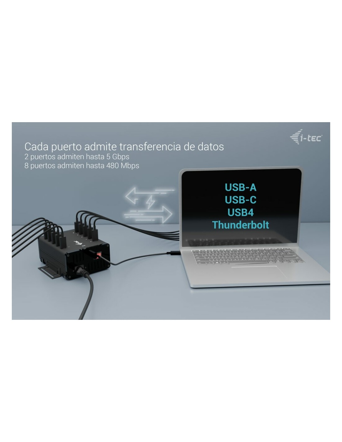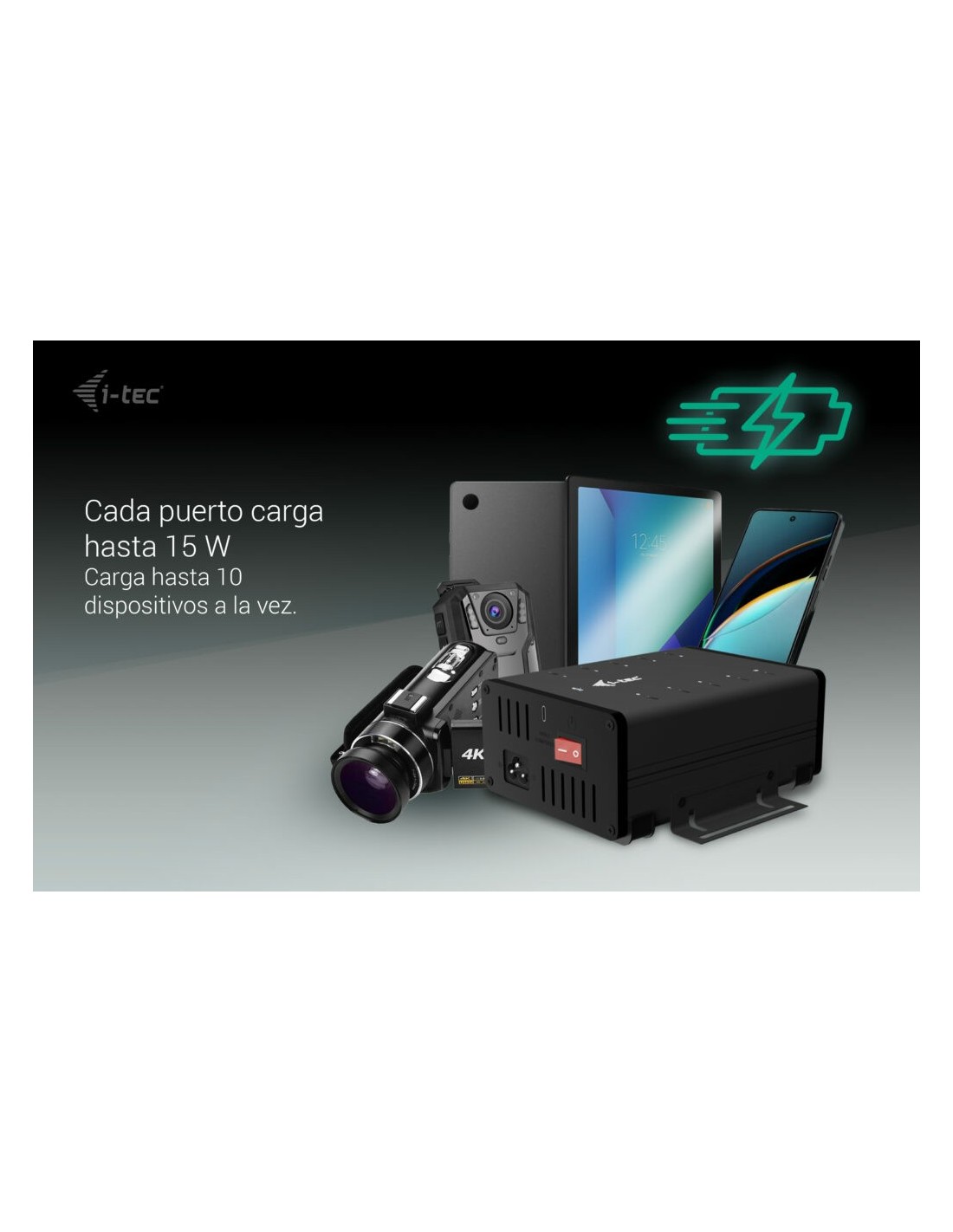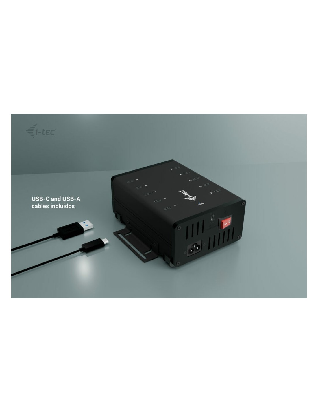 i-tec USB-C/USB-A Metal Charging + data HUB, 15W per port, 10x USB-C, Interior, Corriente alterna, 12 V, Negro