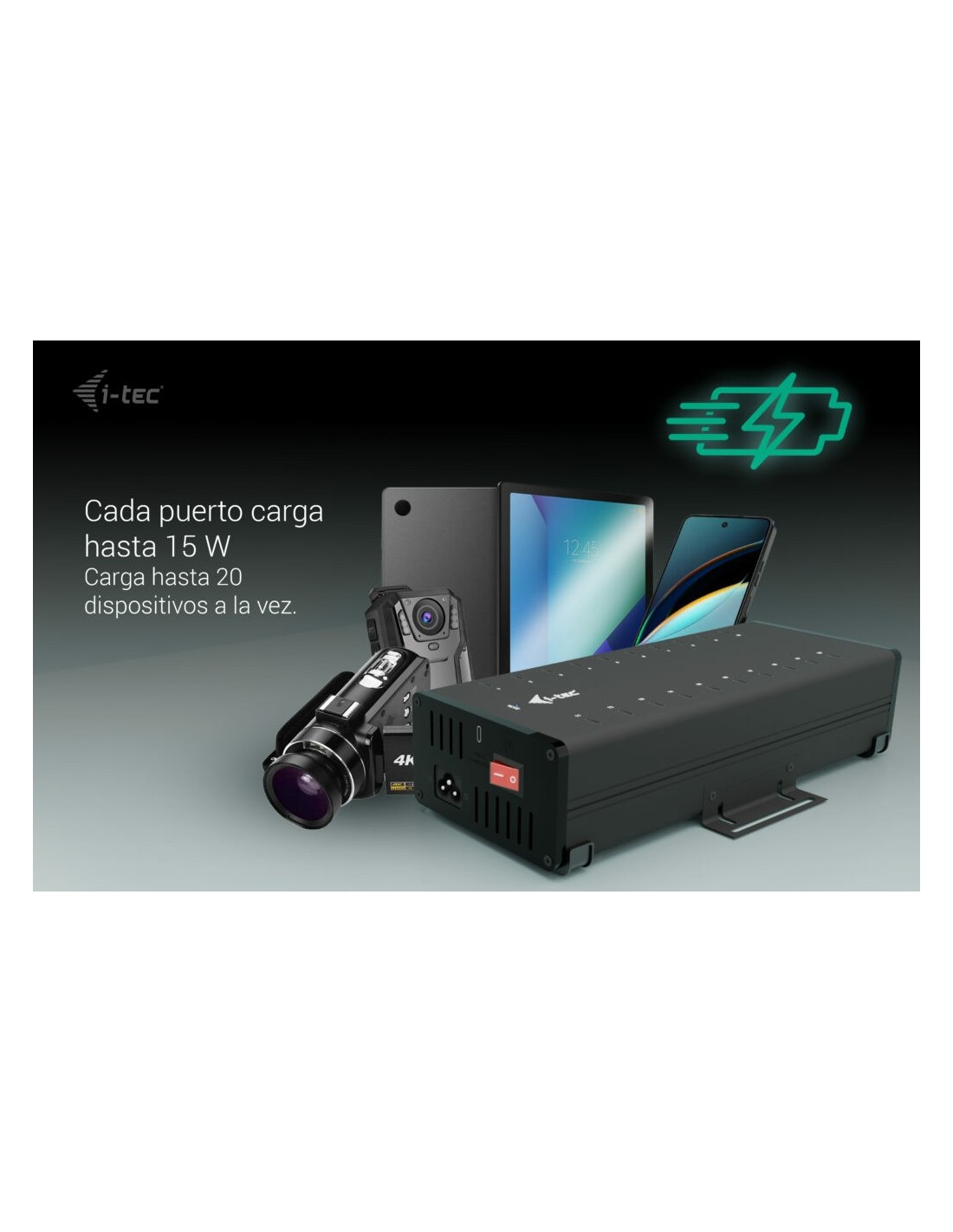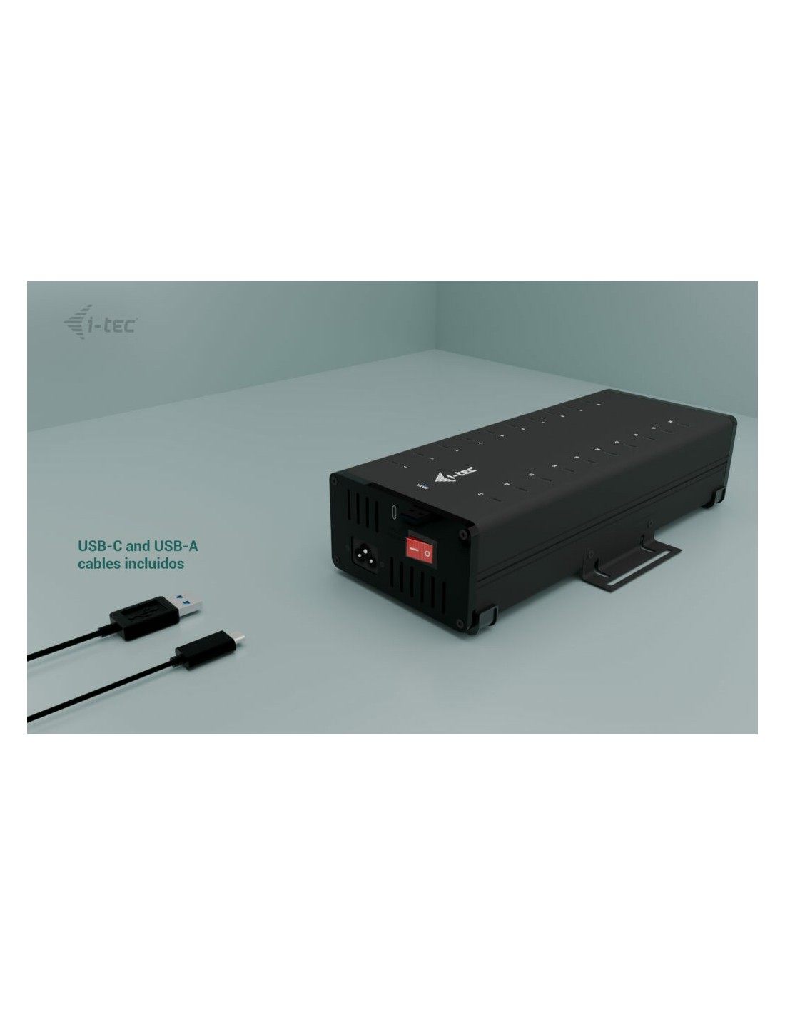 i-tec USB-C/USB-A Metal Charging + data HUB, 15W per port, 20x USB-C, Interior, Corriente alterna, 12 V, Negro