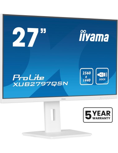 iiyama G-MASTER XUB2797QSN-W2. Diagonal de la pantalla: 68,6 cm (27"), Resolución de la pantalla: 2560 x 1440 Pixeles, Tipo HD: Quad HD, Tecnología de visualización: LED, Superficie de la pantalla: Mate, Tiempo de respuesta: 1 ms, Relación de aspecto nativa: 16:9, Ángulo de visión, horizontal: 178°, Ángulo de visión, vertical: 178°. Altavoces incorporados. Conector USB incorporado, Versión de conector USB: 3.2 Gen 1 (3.1 Gen 1). montaje VESA, Ajustes de altura. Color del producto: Blanco