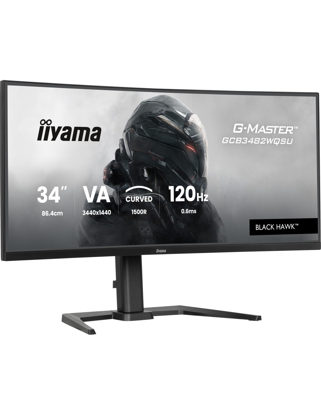 iiyama GCB3482WQSU-B1. Diagonal de la pantalla: 86,4 cm (34"), Resolución de la pantalla: 3440 x 1440 Pixeles, Tipo HD: UltraWide Quad HD, Tecnología de visualización: LED, Tiempo de respuesta: 0,6 ms, Relación de aspecto nativa: 21:9, Ángulo de visión, horizontal: 178°, Ángulo de visión, vertical: 178°. Altavoces incorporados. Conector USB incorporado, Versión de conector USB: 3.2 Gen 1 (3.1 Gen 1). montaje VESA, Ajustes de altura. Color del producto: Negro
