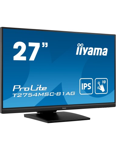 iiyama ProLite T2754MSC-B1AG. Diagonal de la pantalla: 68,6 cm (27"), Resolución de la pantalla: 1920 x 1080 Pixeles, Tipo HD: Full HD, Tecnología de visualización: LED, Tiempo de respuesta: 4 ms, Relación de aspecto nativa: 16:9, Ángulo de visión, horizontal: 178°, Ángulo de visión, vertical: 178°. Altavoces incorporados. Conector USB incorporado, Versión de conector USB: 3.2 Gen 1 (3.1 Gen 1). montaje VESA, Ajustes de altura. Color del producto: Negro