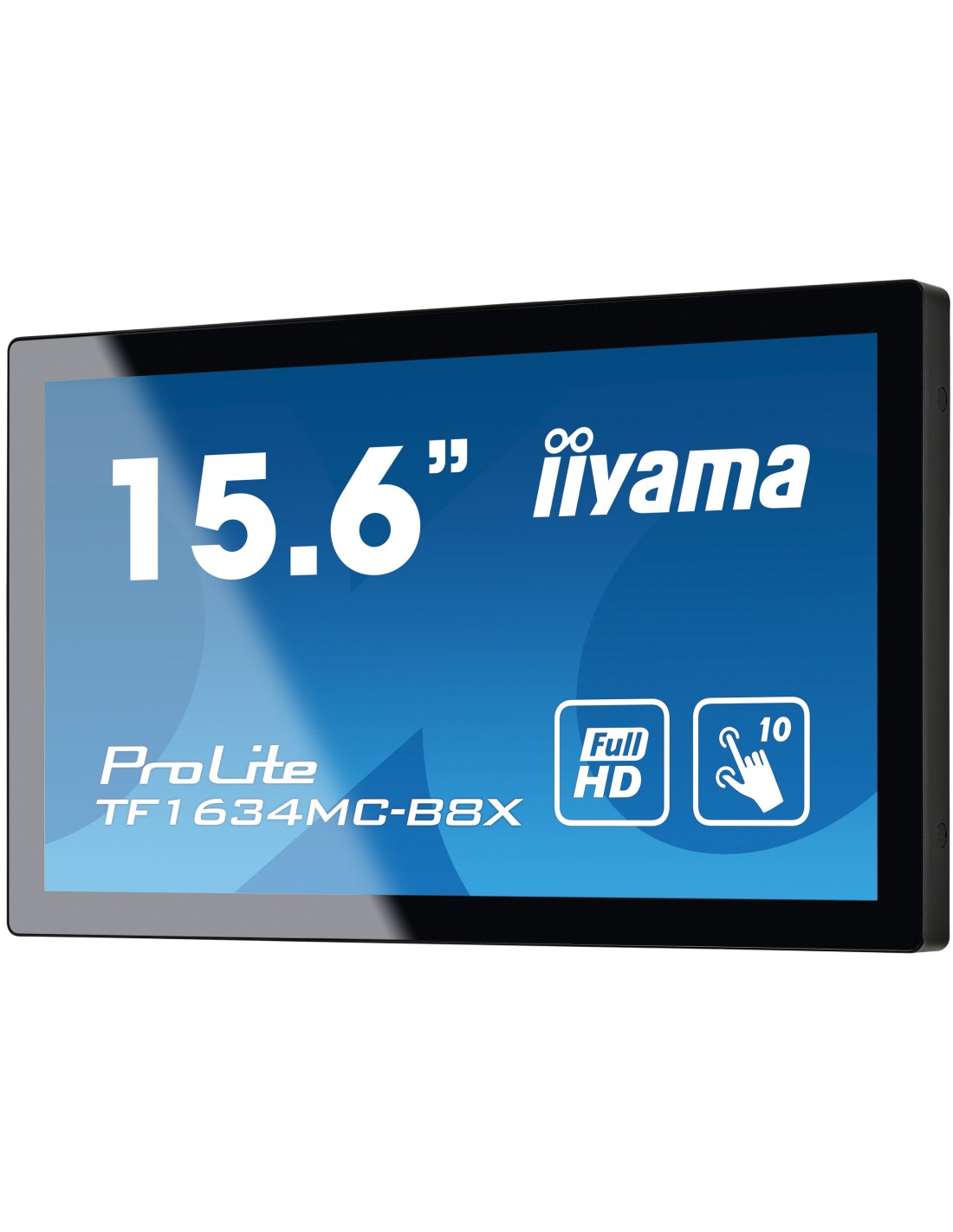 iiyama ProLite TF1634MC-B8X. Diagonal de la pantalla: 39,6 cm (15.6"), Resolución de la pantalla: 1920 x 1080 Pixeles, Tipo HD: Full HD, Tecnología de visualización: LED, Tiempo de respuesta: 25 ms, Relación de aspecto nativa: 16:9, Ángulo de visión, horizontal: 178°, Ángulo de visión, vertical: 178°. montaje VESA. Color del producto: Negro