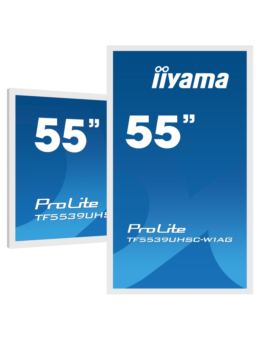 iiyama ProLite TF5539UHSC-W1AG. Diagonal de la pantalla: 139,7 cm (55"), Resolución de la pantalla: 3840 x 2160 Pixeles, Tipo HD: 4K Ultra HD, Tecnología de visualización: LED, Tiempo de respuesta: 8 ms, Relación de aspecto nativa: 16:9, Ángulo de visión, horizontal: 178°, Ángulo de visión, vertical: 178°. Altavoces incorporados. montaje VESA. Color del producto: Blanco