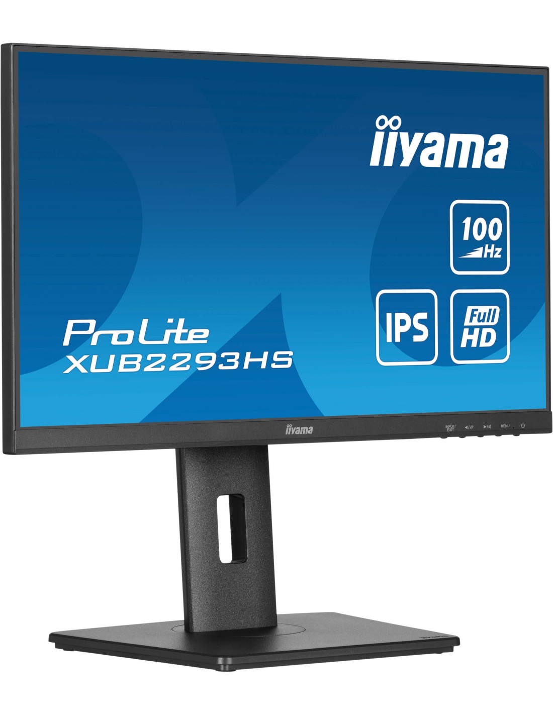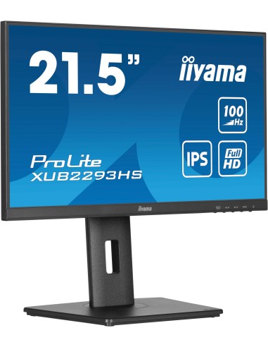 iiyama ProLite XUB2293HS-B6. Diagonal de la pantalla: 54,6 cm (21.5"), Resolución de la pantalla: 1920 x 1080 Pixeles, Tipo HD: Full HD, Tecnología de visualización: LED, Superficie de la pantalla: Mate, Tiempo de respuesta: 1 ms, Relación de aspecto nativa: 16:9, Ángulo de visión, horizontal: 178°, Ángulo de visión, vertical: 178°. Altavoces incorporados. montaje VESA, Ajustes de altura. Color del producto: Negro