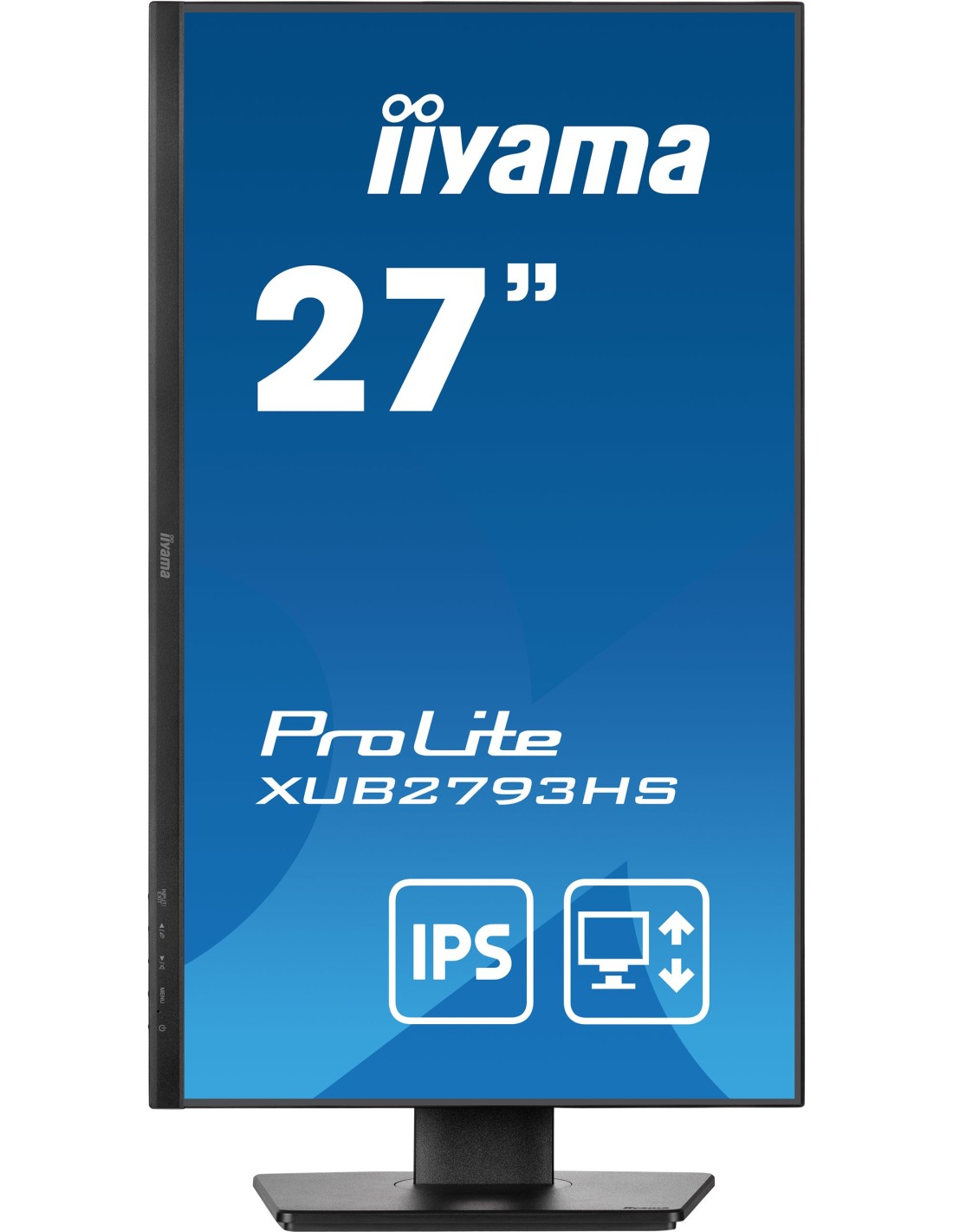 iiyama ProLite XUB2793HS-B7. Diagonal de la pantalla: 68,6 cm (27"), Resolución de la pantalla: 1920 x 1080 Pixeles, Tipo HD: Full HD, Tecnología de visualización: LED, Superficie de la pantalla: Mate, Tiempo de respuesta: 1 ms, Relación de aspecto nativa: 16:9, Ángulo de visión, horizontal: 178°, Ángulo de visión, vertical: 178°. Altavoces incorporados. montaje VESA, Ajustes de altura. Color del producto: Negro