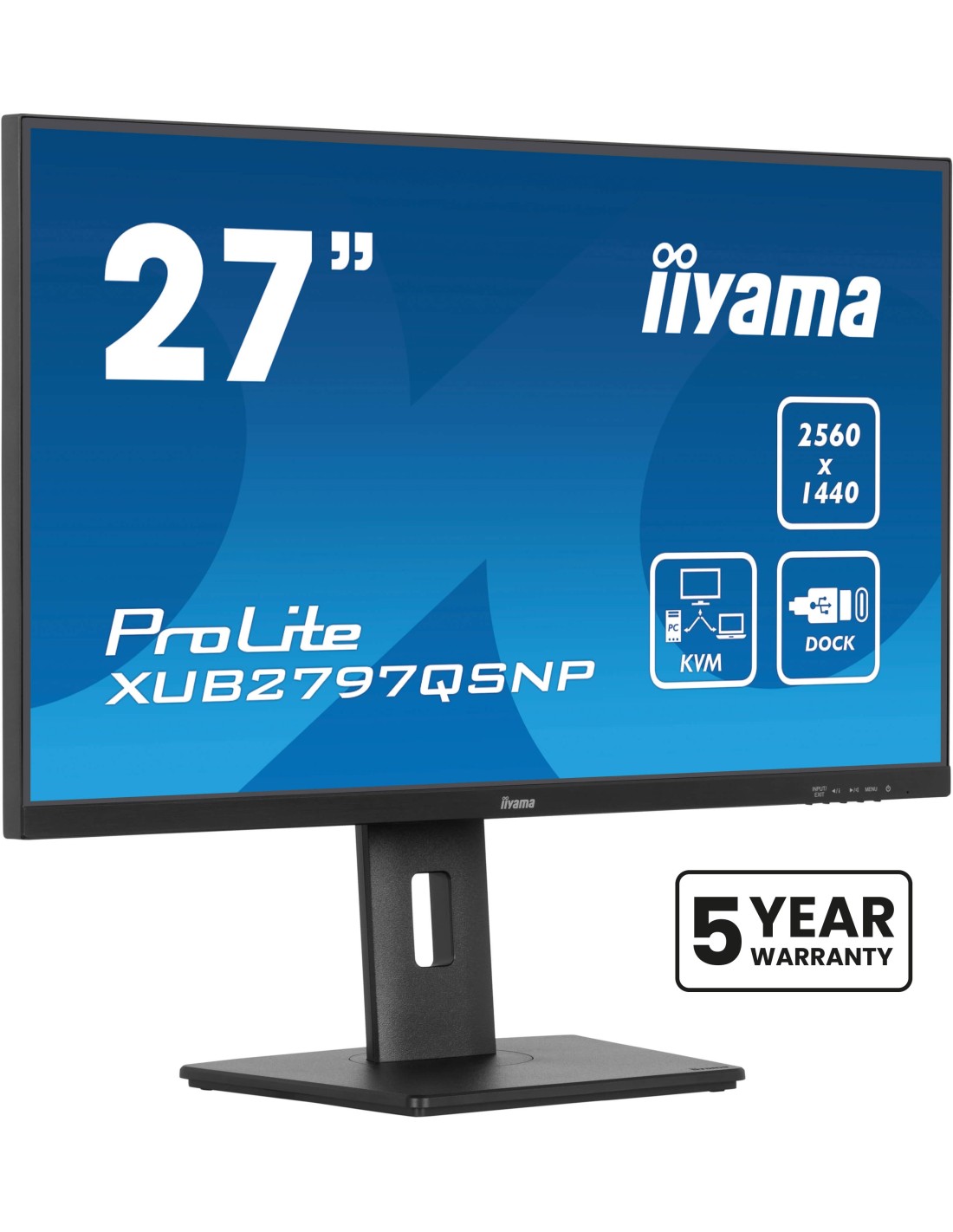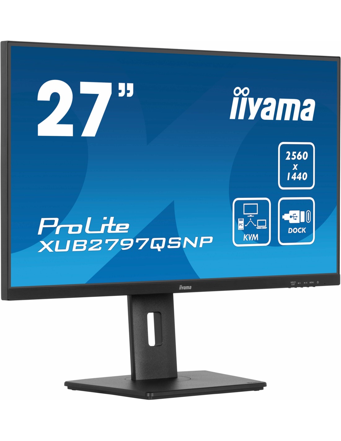 iiyama ProLite XUB2797QSNP-B1. Diagonal de la pantalla: 68,6 cm (27"), Resolución de la pantalla: 2560 x 1440 Pixeles, Tipo HD: Quad HD, Tecnología de visualización: LED, Superficie de la pantalla: Mate, Tiempo de respuesta: 1 ms, Relación de aspecto nativa: 16:9, Ángulo de visión, horizontal: 178°, Ángulo de visión, vertical: 178°. Altavoces incorporados. Conector USB incorporado, Versión de conector USB: 3.2 Gen 1 (3.1 Gen 1). montaje VESA, Ajustes de altura. Color del producto: Negro