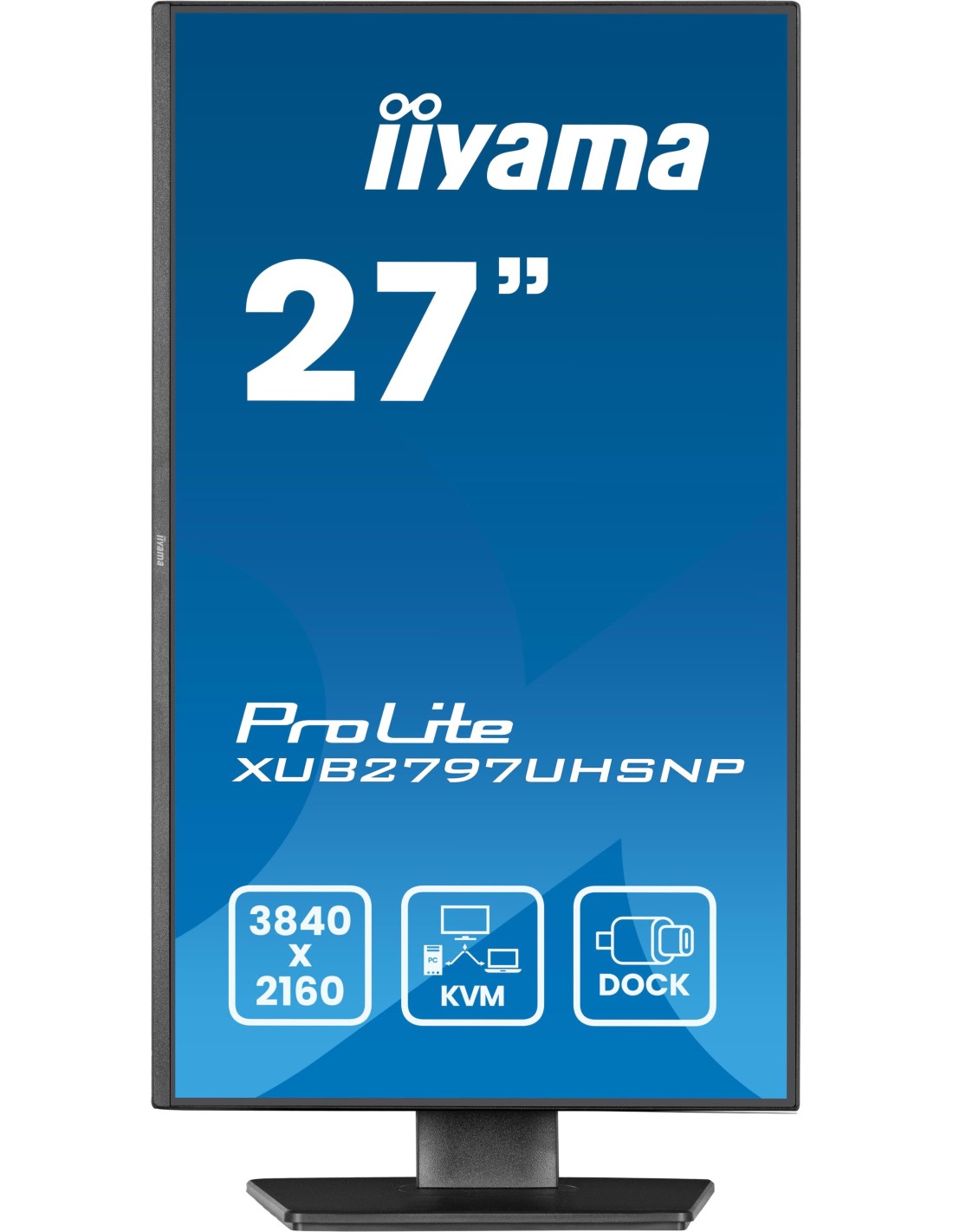 iiyama ProLite XUB2797UHSNP-B1. Diagonal de la pantalla: 68,6 cm (27"), Resolución de la pantalla: 3840 x 2160 Pixeles, Tipo HD: 4K Ultra HD, Tecnología de visualización: LED, Superficie de la pantalla: Mate, Tiempo de respuesta: 4 ms, Relación de aspecto nativa: 16:9, Ángulo de visión, horizontal: 178°, Ángulo de visión, vertical: 178°. Altavoces incorporados. Conector USB incorporado, Versión de conector USB: 3.2 Gen 1 (3.1 Gen 1). montaje VESA, Ajustes de altura. Color del producto: Negro
