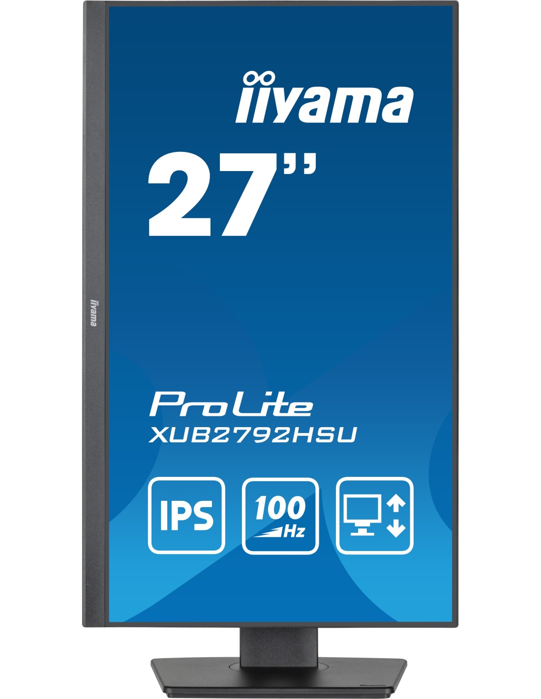 iiyama XUB2792HSU-B6. Diagonal de la pantalla: 68,6 cm (27"), Resolución de la pantalla: 1920 x 1080 Pixeles, Tipo HD: Full HD, Tecnología de visualización: LED, Superficie de la pantalla: Mate, Tiempo de respuesta: 0,4 ms, Relación de aspecto nativa: 16:9, Ángulo de visión, horizontal: 178°, Ángulo de visión, vertical: 178°. Altavoces incorporados. Conector USB incorporado, Versión de conector USB: 3.2 Gen 1 (3.1 Gen 1). montaje VESA, Ajustes de altura. Color del producto: Negro
