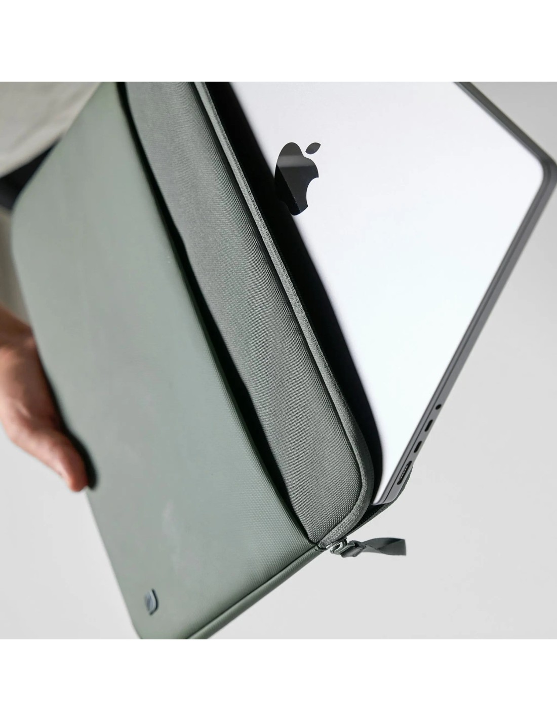 Protección y almacenamiento sobre la marcha para tu portátil con protección acolchada completa y forro interior de piel sintética. A. R. C. La funda camina por la línea de la expresión minimalista, fabricada en poliéster reciclado con cremalleras YKK y un bolsillo exterior con cremallera para guardar billetes y pequeños accesorios de cordón. Cabe un portátil de hasta 16".