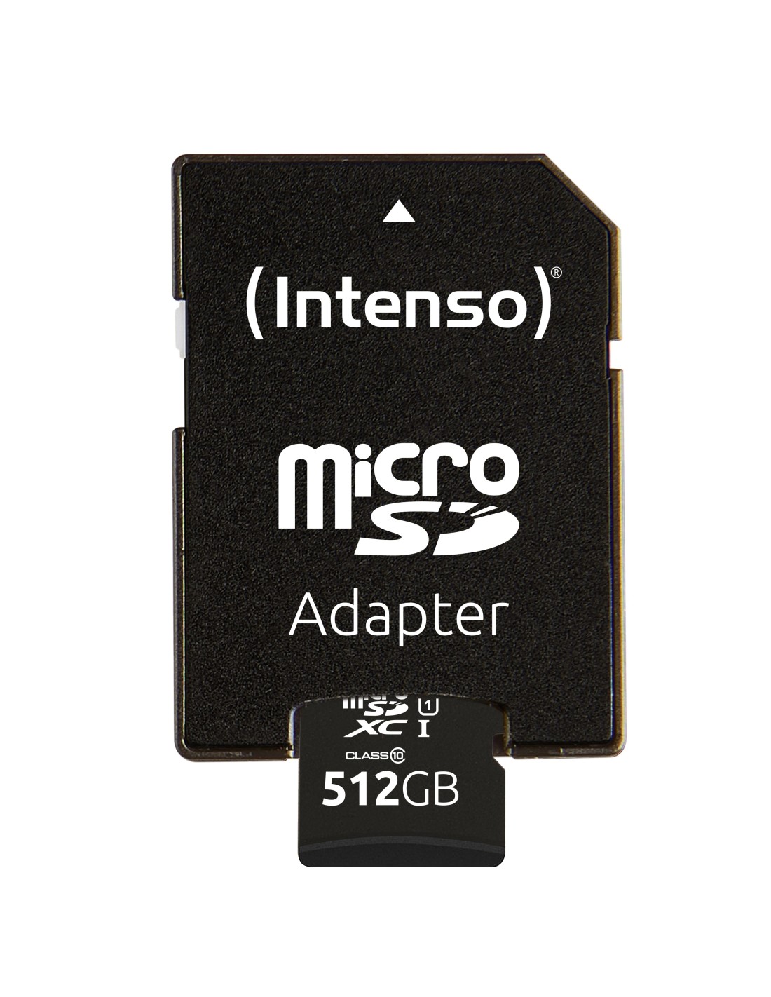 Intenso microSD Karte UHS-I Premium. Capacidad: 512 GB, Tipo de tarjeta flash: MicroSD, Clase de memoria flash: Clase 10, Tipo de memoria interna: UHS-I, Velocidad de lectura: 90 MB/s, Clase de velocidad UHS: Class 1 (U1). Funciones de protección: Resistente a golpes, Resistente a la temperatura, Resistente al agua, Color del producto: Negro