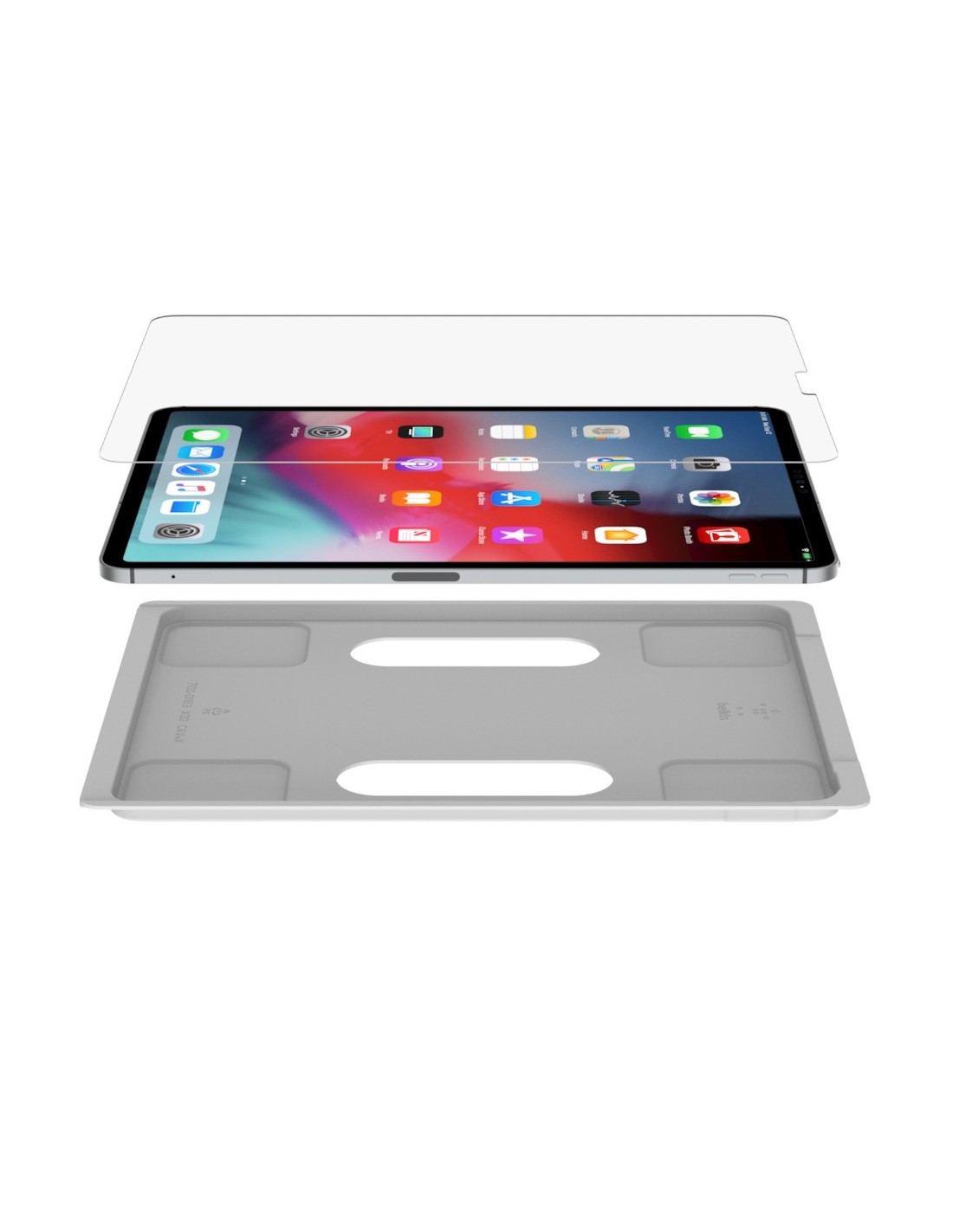 Belkin SCREENFORCE. Tipo de protector de pantalla: Protector de pantalla, Tamaño máximo de pantalla: 32,8 cm (12.9"), Material: Vidrio templado, Dureza: 9H, Marca compatible: Apple, Compatibilidad: iPad Pro 12.9". Cantidad por paquete: 1 pieza(s)