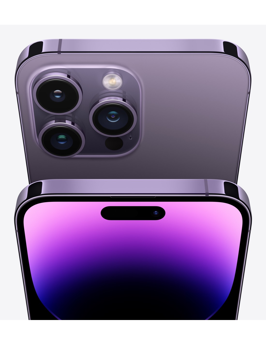 Apple iPhone 14 Pro Max . Diagonal de la pantalla: 17 cm (6.7"), Resolución de la pantalla: 2796 x 1290 Pixeles. Familia de procesador: Apple, Modelo del procesador: A16. Capacidad de almacenamiento interno: 128 GB. Resolución de la cámara trasera (numérica): 48 MP, Tipo de cámara trasera: Triple cámara. Capacidad de la tarjeta SIM: SIM doble. Sistema operativo instalado: iOS 16. Color del producto: Púrpura. Peso: 240 g