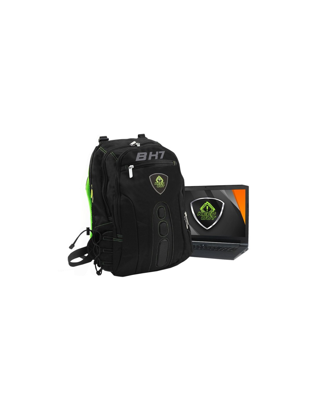 KeepOut BK7G. Color principal del producto: Negro, Verde, Tamaño máximo de pantalla: 39,6 cm (15.6"), Diagonal de la pantalla: 39,6 cm (15.6"). Ancho: 370 mm, Profundidad: 14 mm, Altura: 480 mm. Material: Nylon