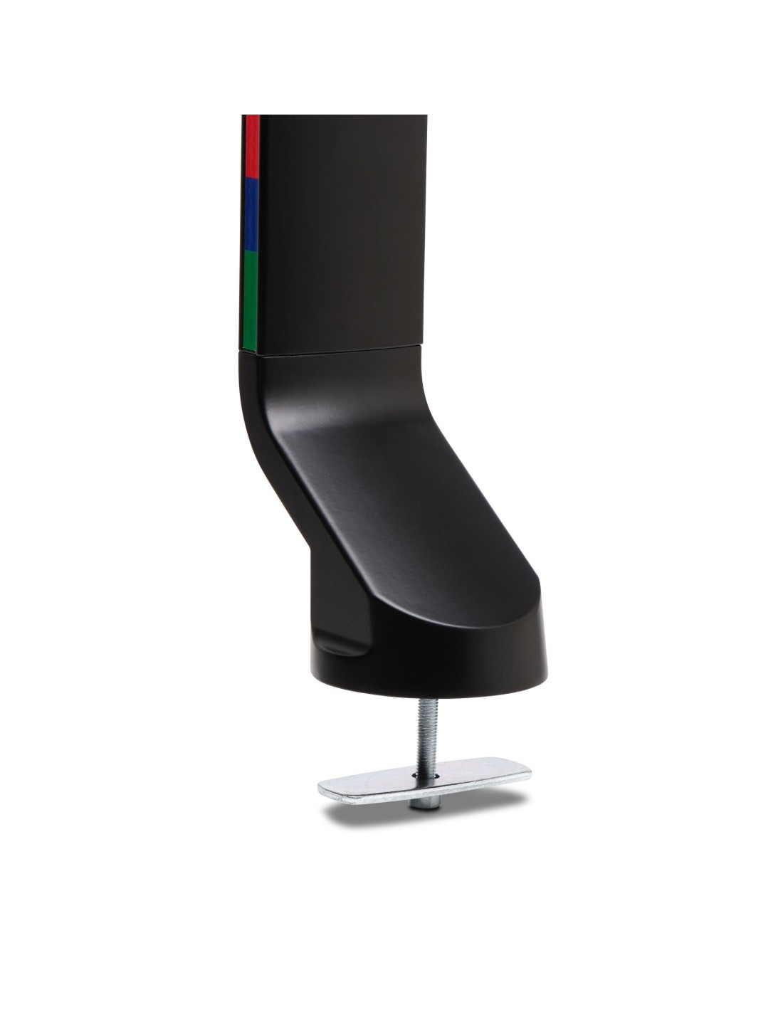 Con el Brazo SmartFit™ de ahorro de espacio para dos monitores, es muy fácil encontrar el ajuste ergonómico y correcto de los monitores, incluso en escritorios con poca profundidad. La instalación fácil y no permanente incluye las herramientas necesarias y una abrazadera en C preinstalada que queda orientada hacia la parte frontal del escritorio, lo que hace que la instalación sea mucho más sencilla, sobre todo en espacios reducidos (se incluye un cierre de pasacables opcional).