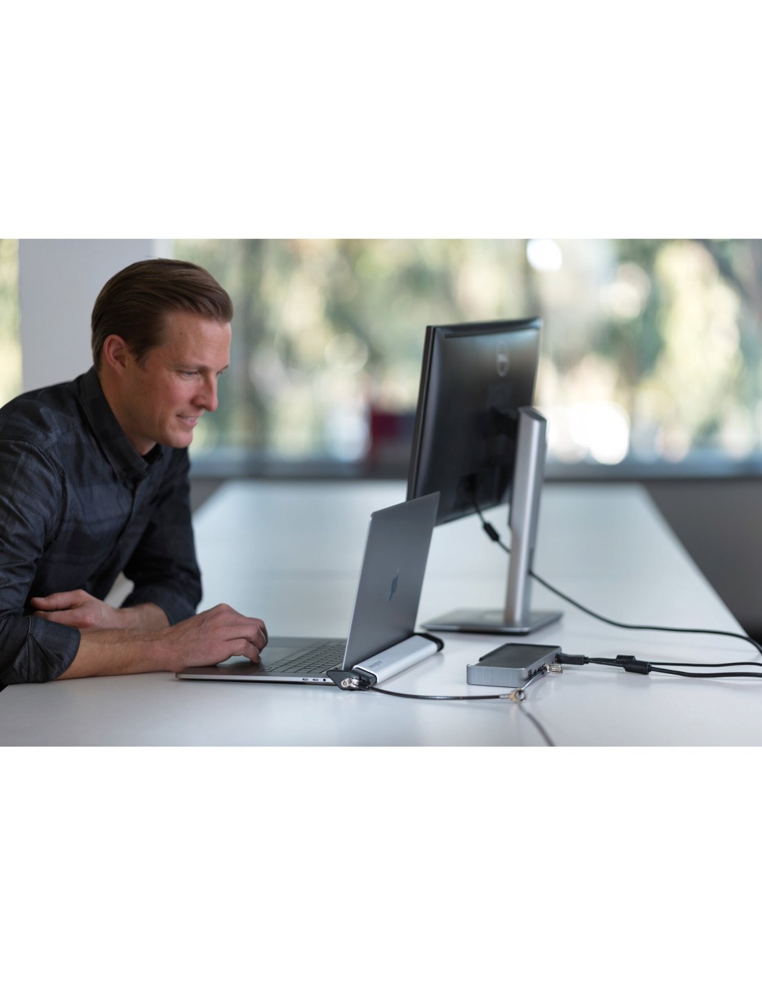 La estación de bloqueo para portátiles 2.0 de Kensington se creó para proteger el MacBook® y otros dispositivos ultrafinos. La estación de bloqueo para portátiles 2.0 ofrece la protección de confianza que ha hecho de Kensington The Professionals’ Choice™ en seguridad de portátiles durante más de 25 años. Es la solución de seguridad de escritorio preferida para portátiles ultrafinos sin ranuras de seguridad.