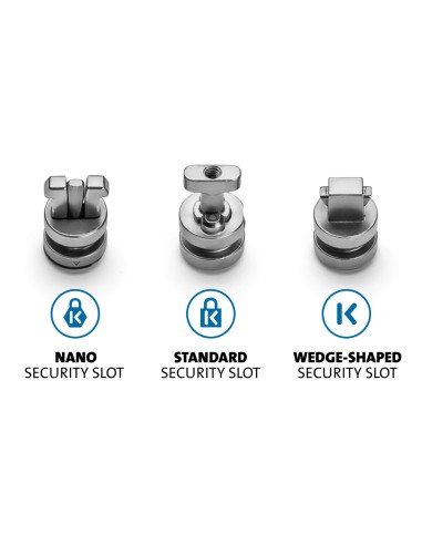 Los anclajes de seguridad ClickSafe® para ranuras universales son compatibles con cualquier candado ClickSafe® para portátiles de Kensington y ofrecen tres anclajes diferentes para las ranuras de seguridad estándar (T-Bar™), Nano y de tipo wedge, independientemente de la marca o la generación. Los anclajes de seguridad ClickSafe® han sido verificados y han superado pruebas de fuerza, resistencia física y resistencia mecánica.